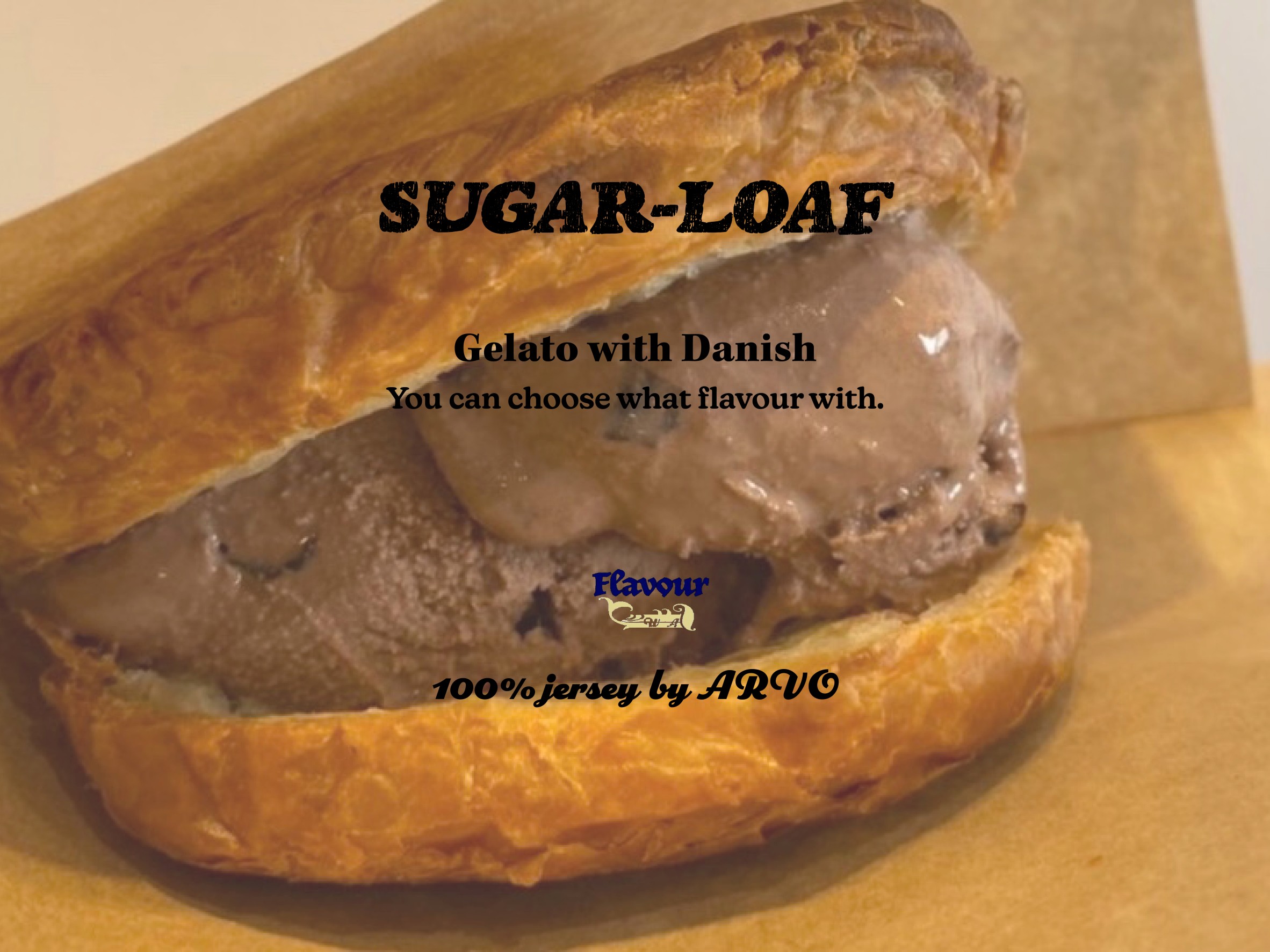"日本初"ジャージーA2ミルク100%使用の絶品アイスクリームジェラートや、北海道北見市にあるベーカリー「RINGO」のデニッシュでジェラートを挟んだオリジナル商品のシュガロフなど日本でFlavour Jでしか食べられない商品が多数ございます。