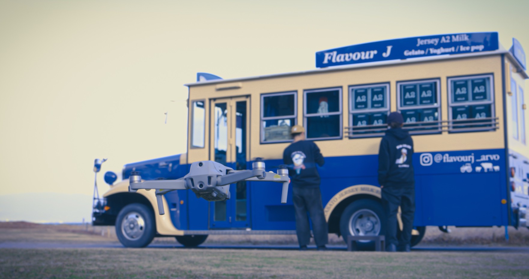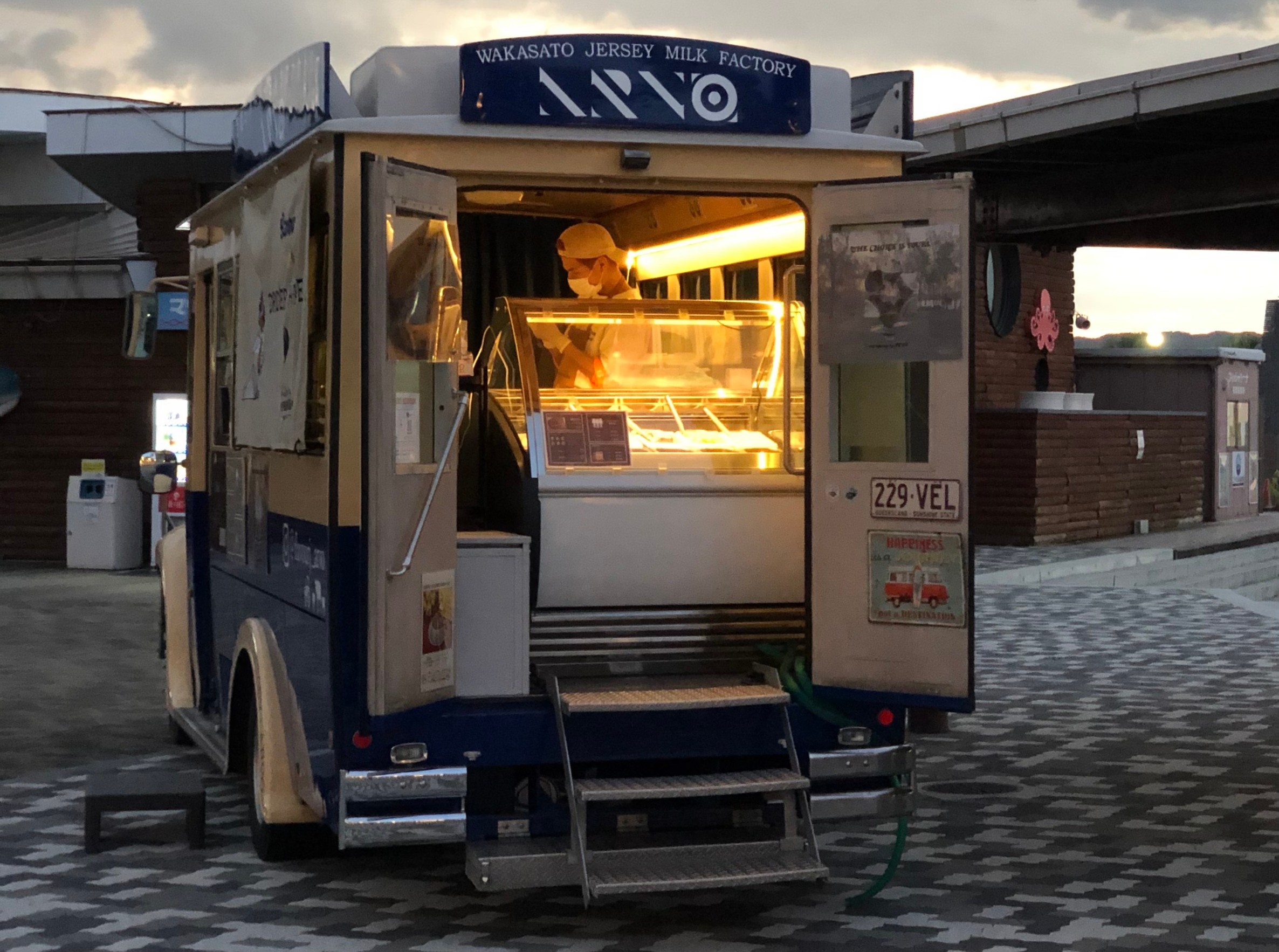 全長7mもあるFlavour Jは現在、移動販売車として稼働していますが、前職は福島県会津若松市で「ピカリン号」として住民の皆さまを街の様々なところへ運んでいました。一度メディアに取りあげていただいた際、昔の利用者の方から「高校時代を思い出す!第二の人生、頑張って!」との声もいただきました。