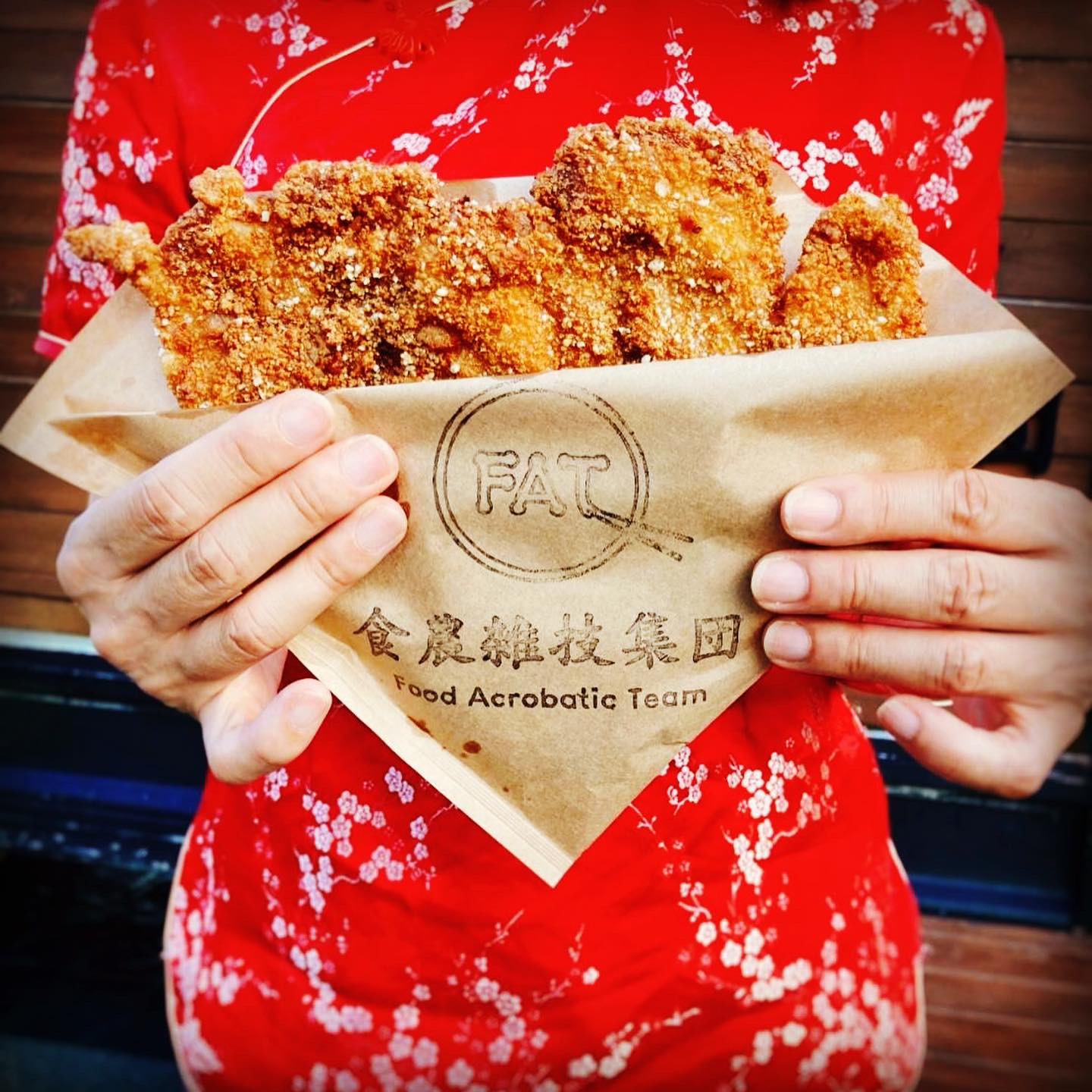 食農雑技集団は台湾へ幾度となく足を運び、食べ歩いた料理の中で美味しいと感じたものを日本向けにメニュー化して販売しています。台湾から仕入れたスパイスや地瓜粉などを使用し、『鶏排』の鶏肉は九州産の新鮮なものを使用し、まさに台湾と国産の良いとこ取りです。ご注文を頂いて一枚一枚丁寧に揚げたてを提供させていただいております。