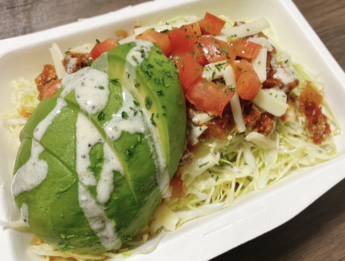 数種類のスパイスを使用したタコミートと自家製ヨーグルトドレッシングで、ご飯も野菜もモリモリ食べられます。