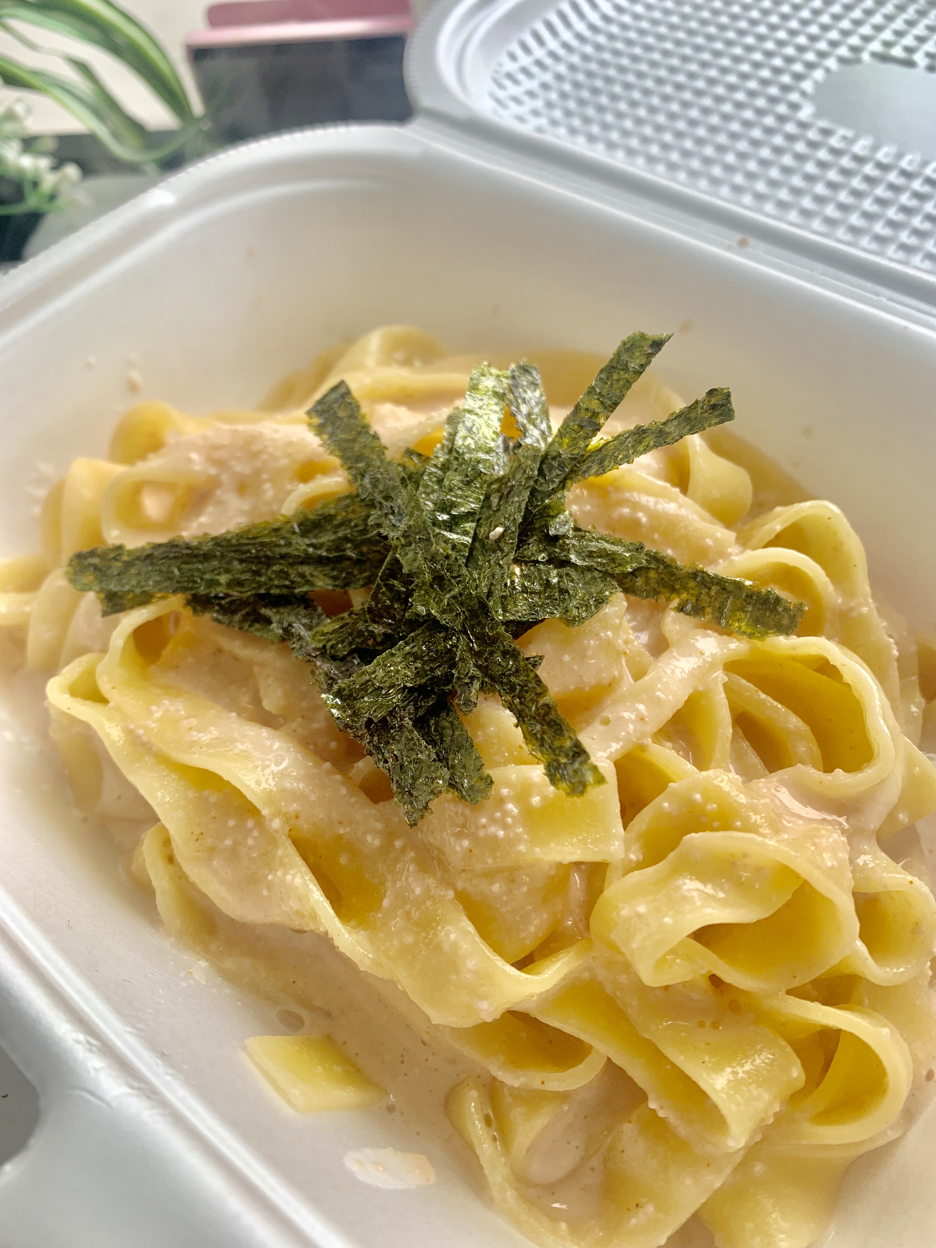 竹炭唐揚げ、揚げバーガー、生パスタ