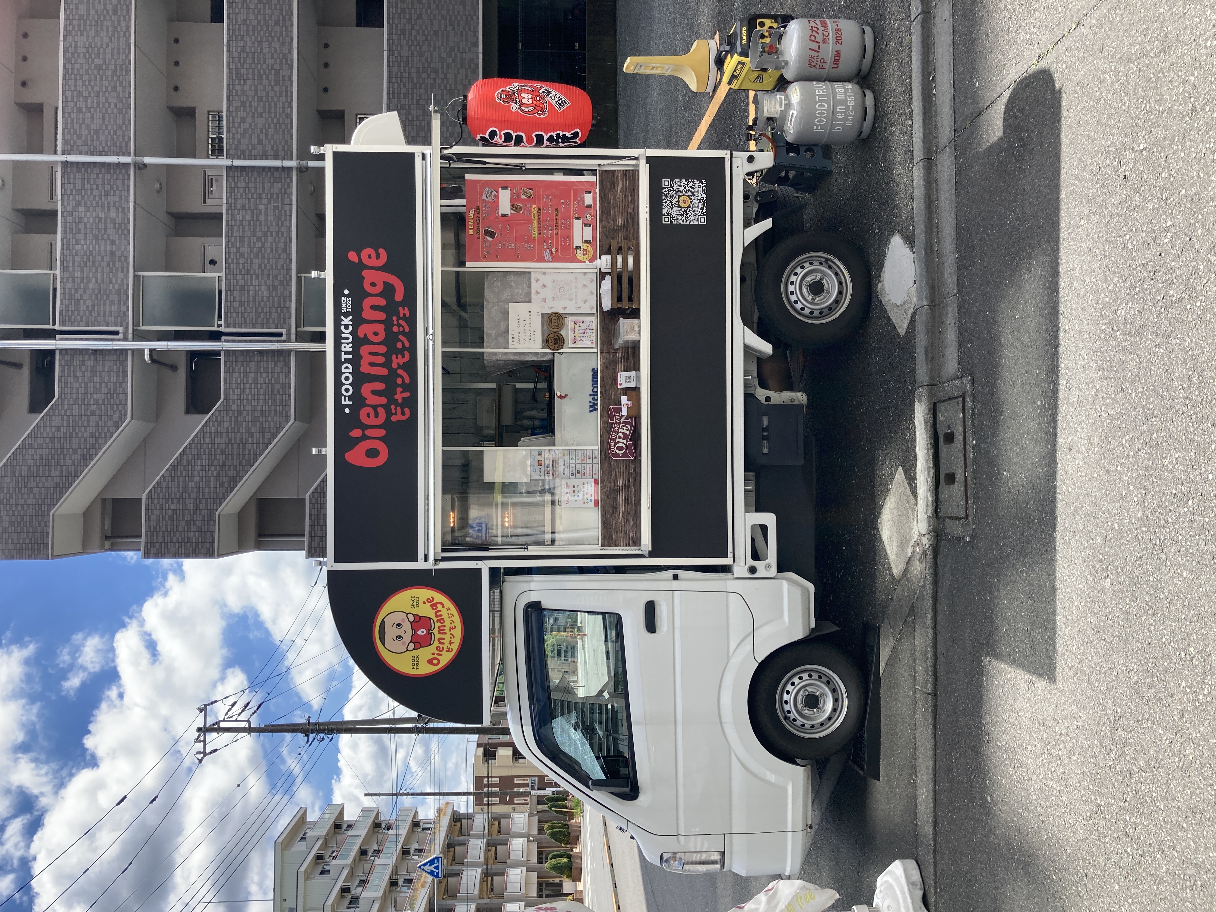 FOODTRUCK bien mangéのキッチンカーはsimple is bestをそのまま表した様な外観となっているので、どのような場所でも外観を損なう事はありません。車のサイズも登録は普通特殊車両ですが、ほぼ軽トラックサイズですので小スペースのオーナー様でも安心です!