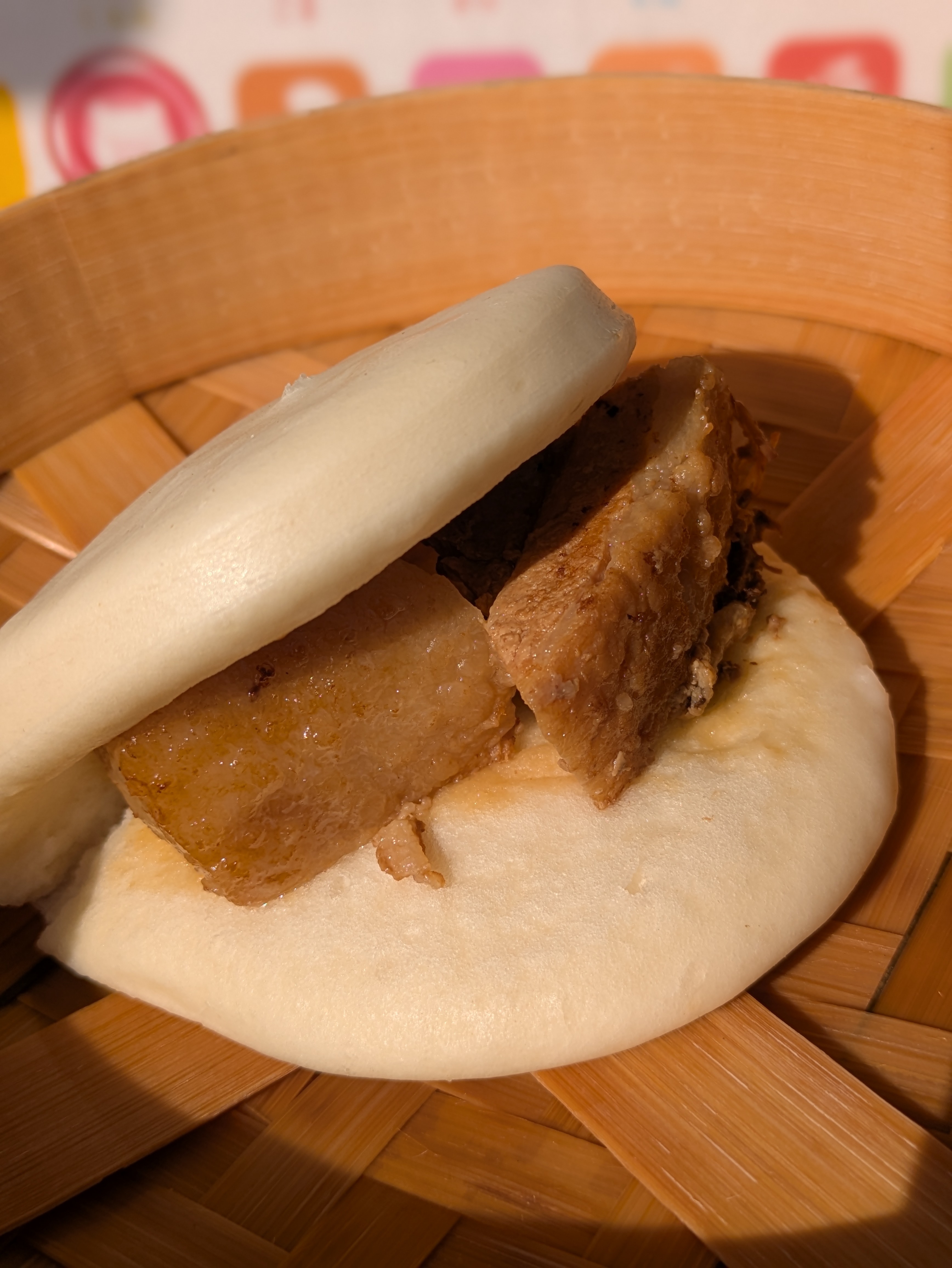 当店自慢の角煮をふんだんに使用したふわふわの割りパン角煮です。