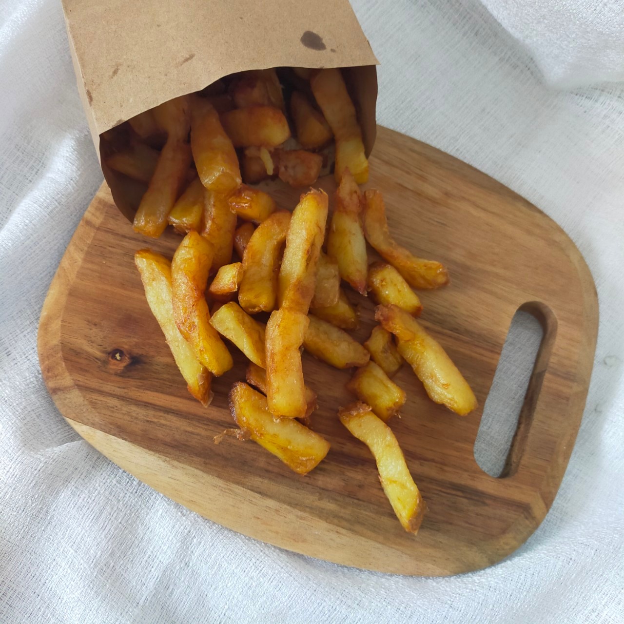 これらの良いところだけを取り、芋は茨城県産、油も無添加コーンサラダ油を使用し、独自の製法で更に熟成させ、茨城県で最終加工したミネラルたっぷりのお塩で頂く、ジャパニーズフリッツは当店だけの味わいとなっております。