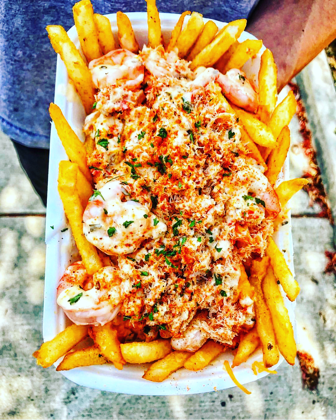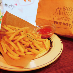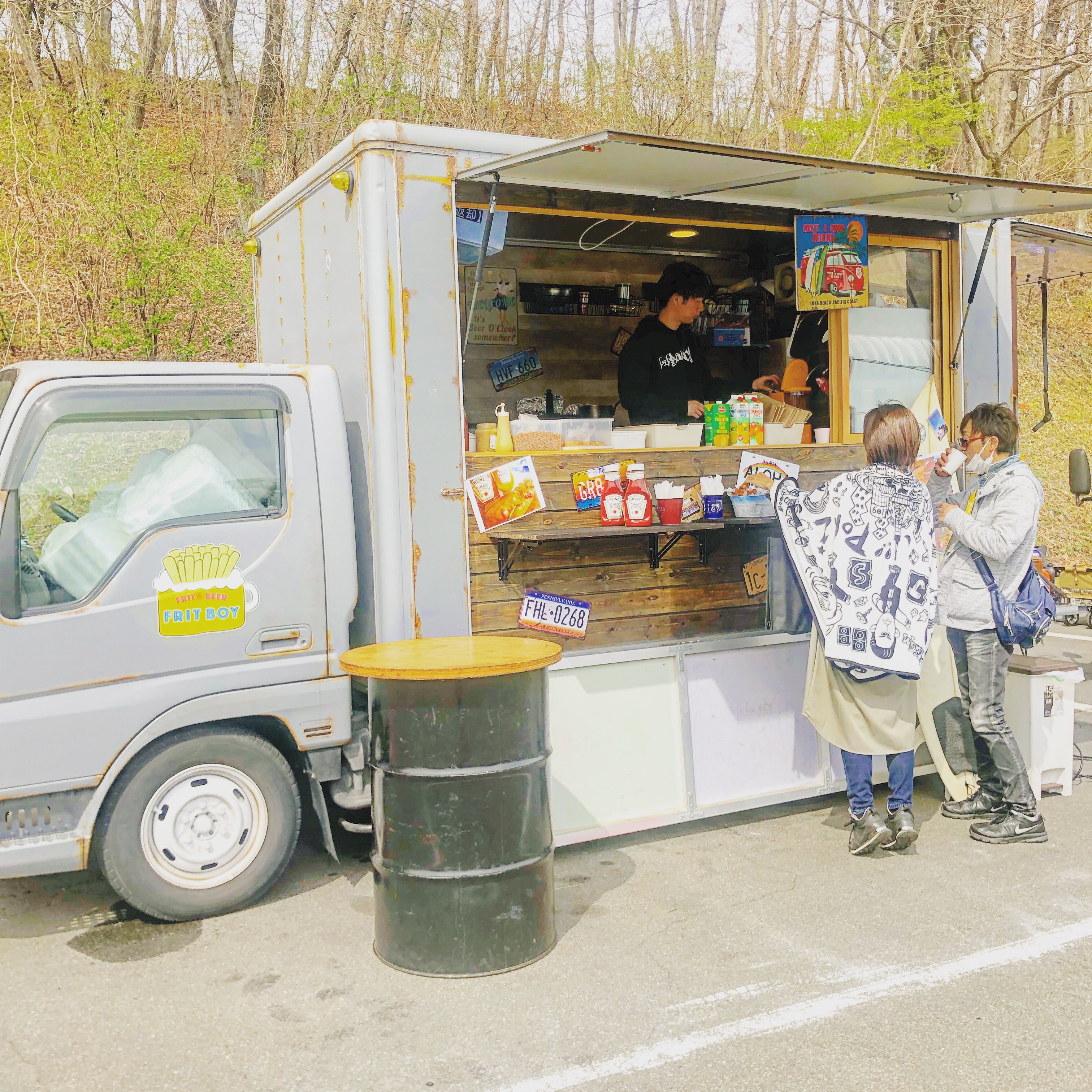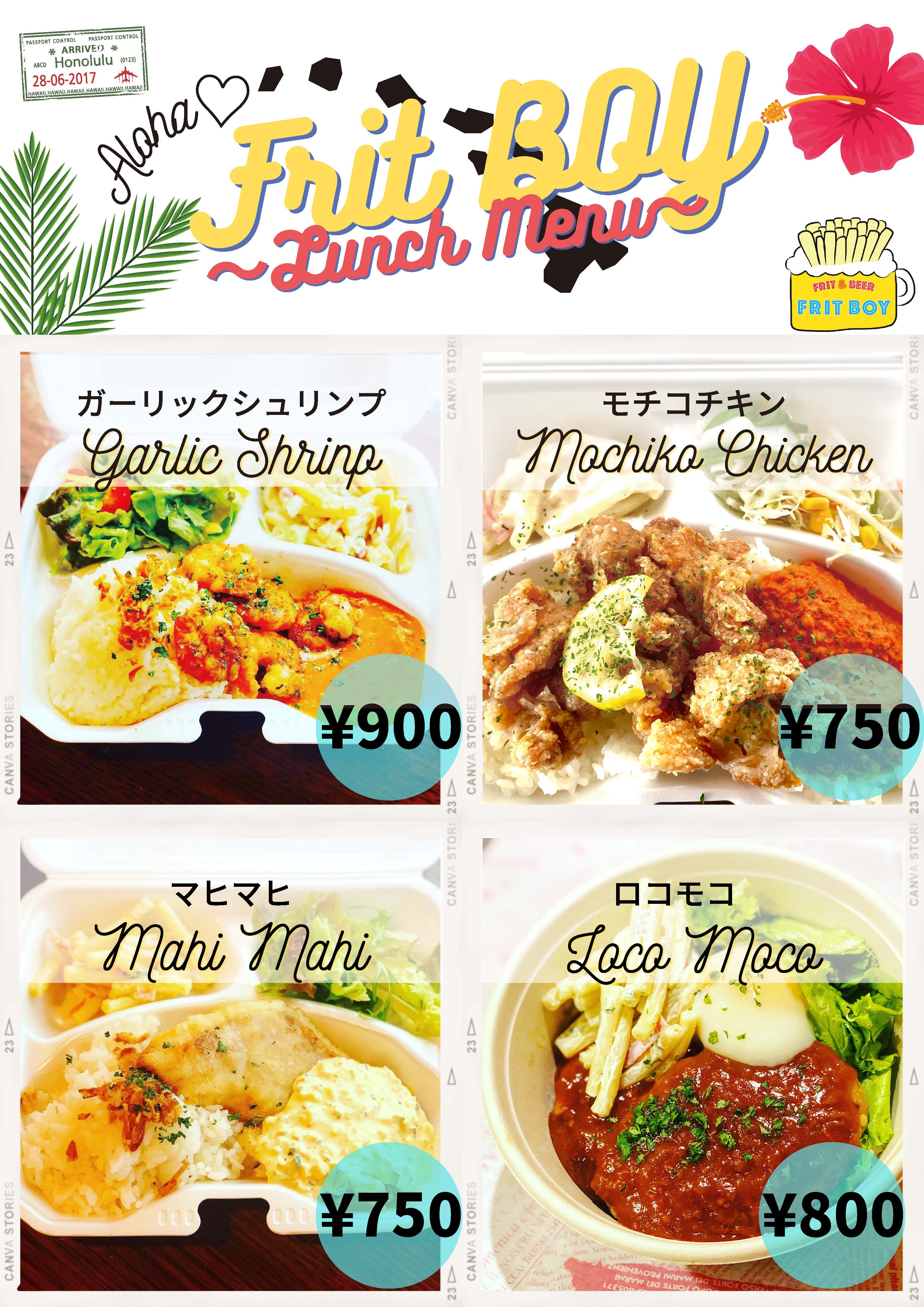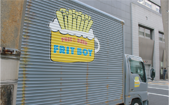 ポップなロゴが目を引くキッチンカーFRIT BOY!キッチンカーでは、人気のフライドポテトはもちろんガーリックシュリンプやモチコチキンなどのハワイアンストリートフードが味わえます!