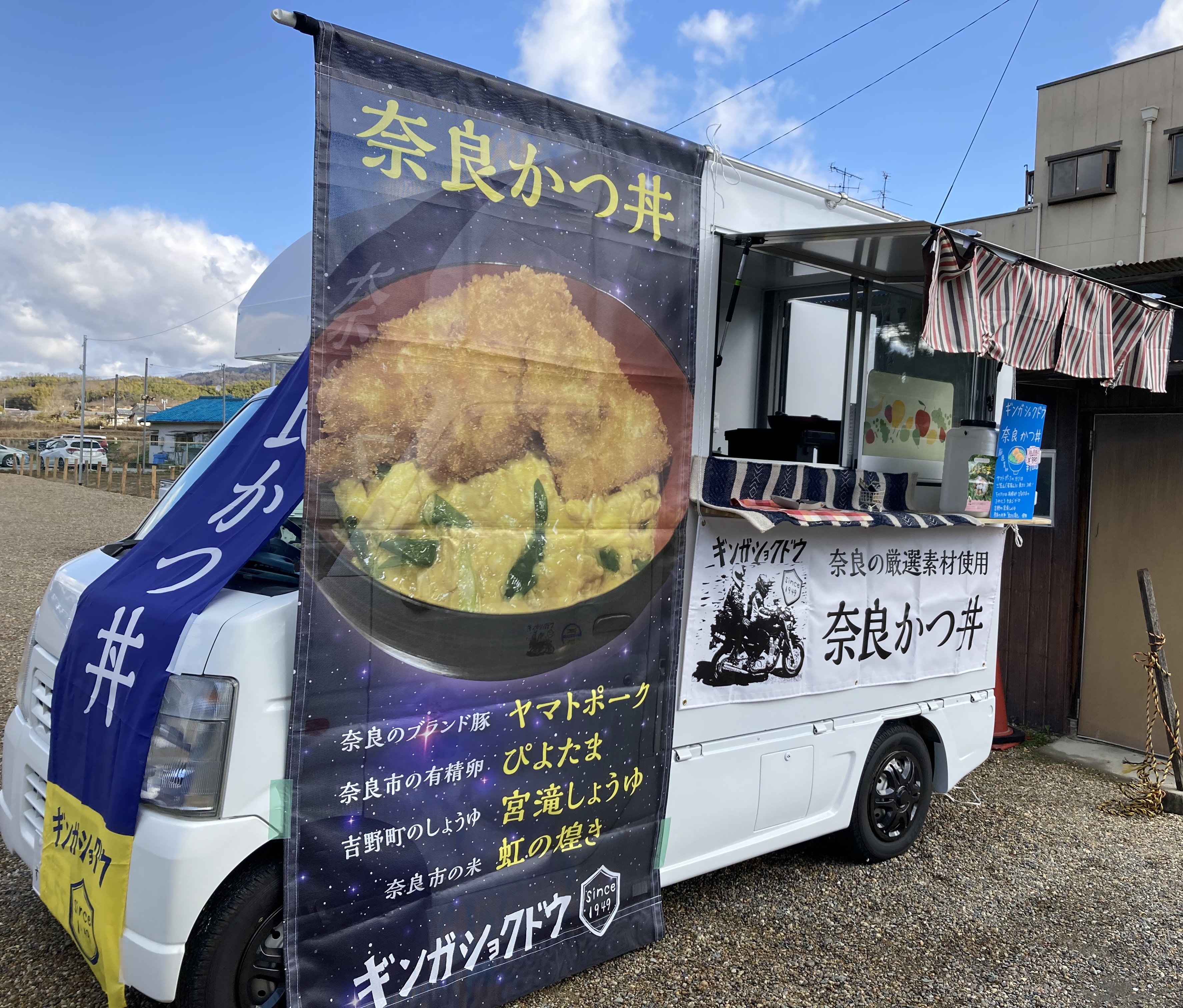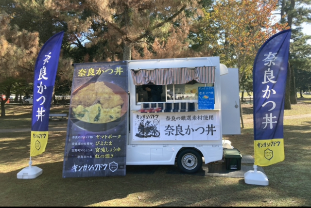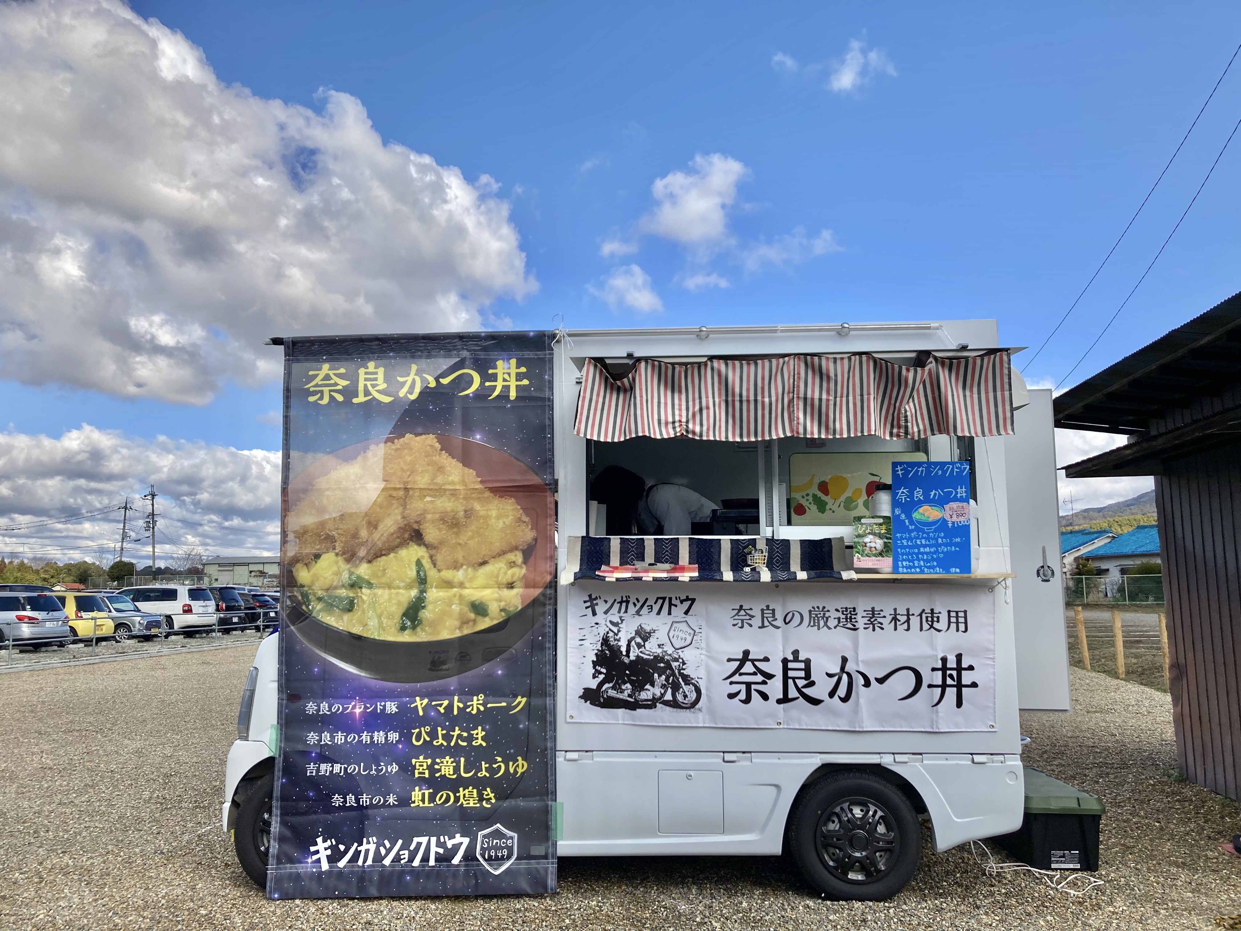 奈良市のJR奈良駅の近くで銀河食堂という食堂をやっています。お店では奈良かつ丼、カツカレー、チキンカツサンドや各種定食などを提供しています。キッチンカーではプレーン・ココア・きな粉の3種類のお味の『いいご縁ドーナツ』を販売します。