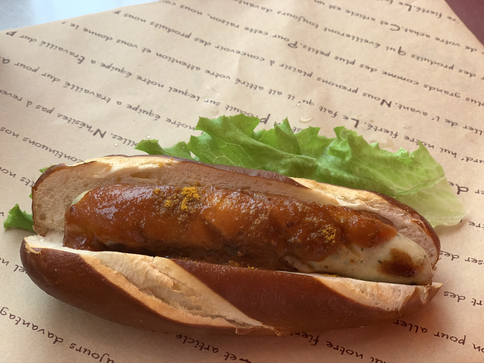 オリジナルのカリーブルストとプレッツェルのホットドッグ
