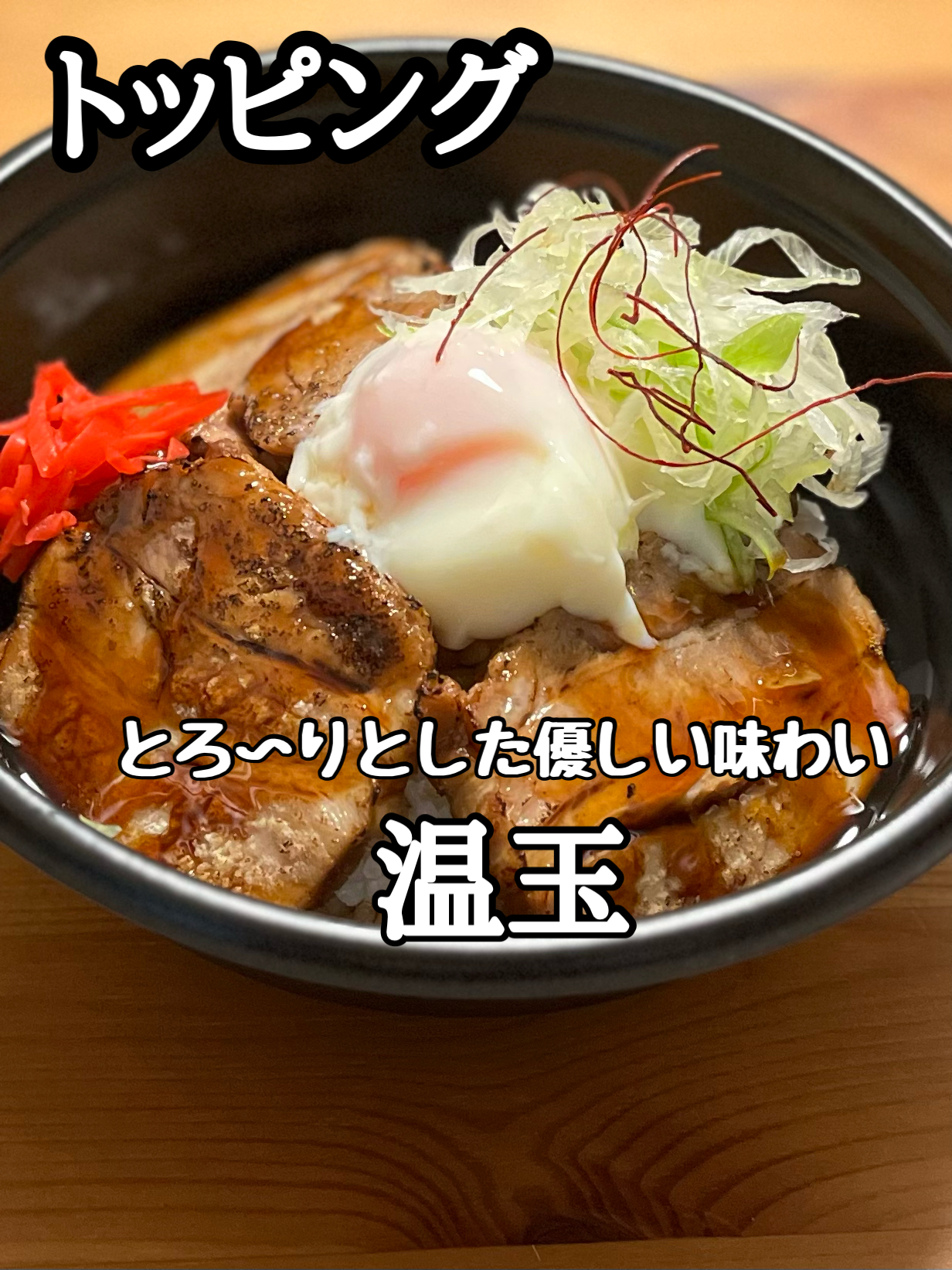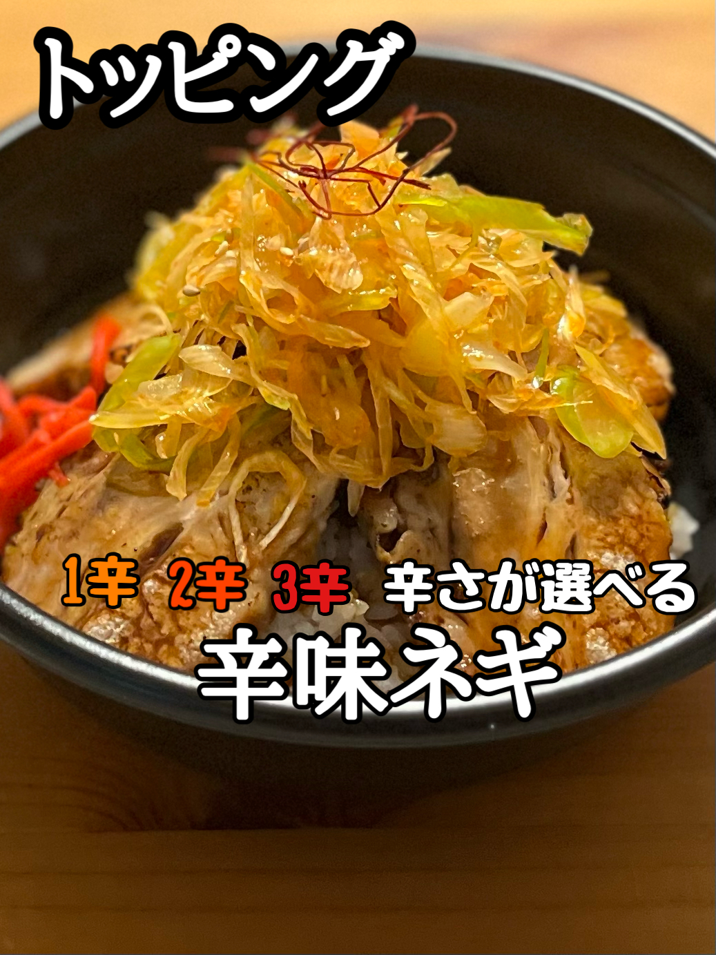 どんなトッピングにも合うように作った3種のベース丼に加え、7種類のトッピングや肉増し・大盛りの自由なカスタマイズで組合せ無限大!