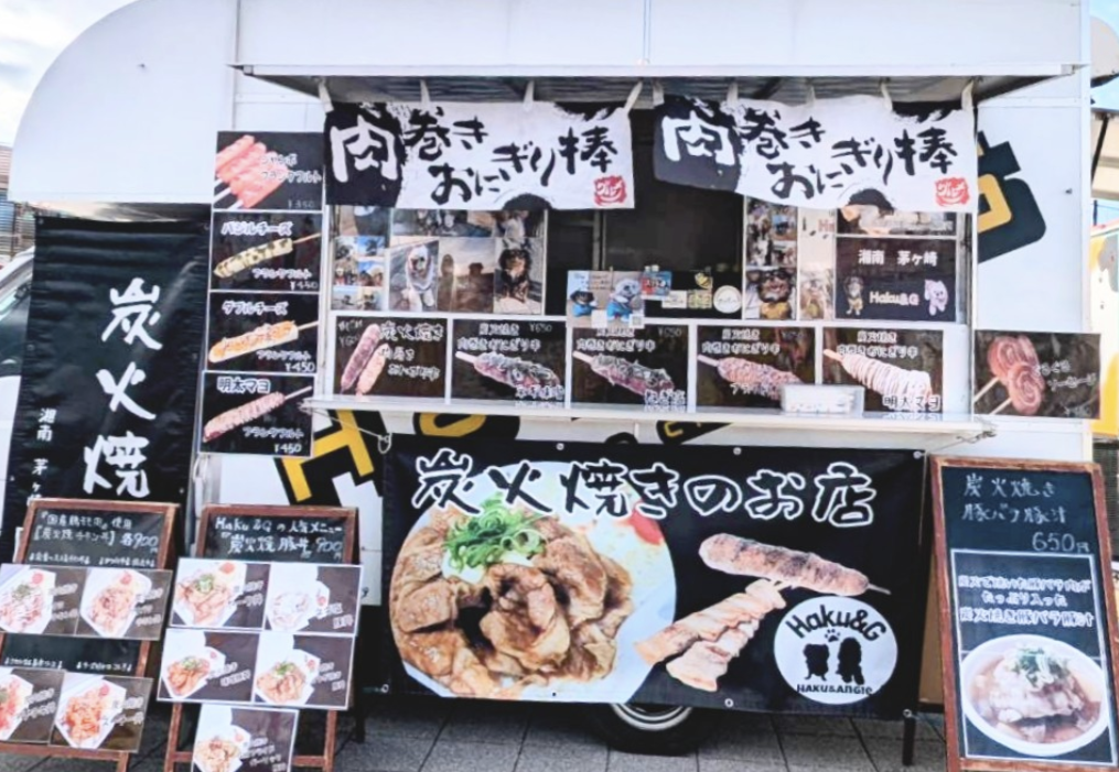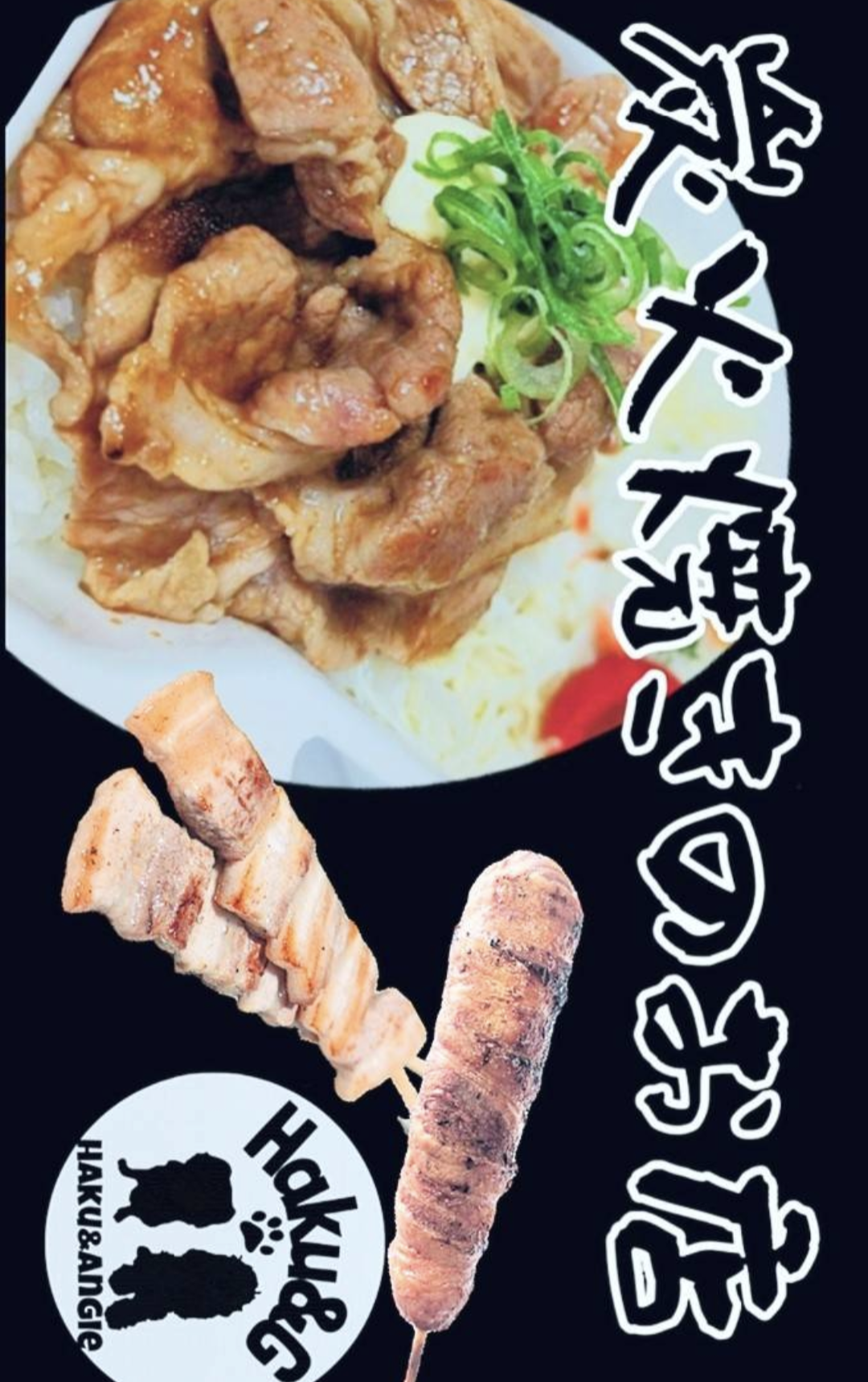 炭火焼きポーク丼、炭火焼きチキン丼、炭火焼きバーガー、肉巻きおにぎり串、かき氷