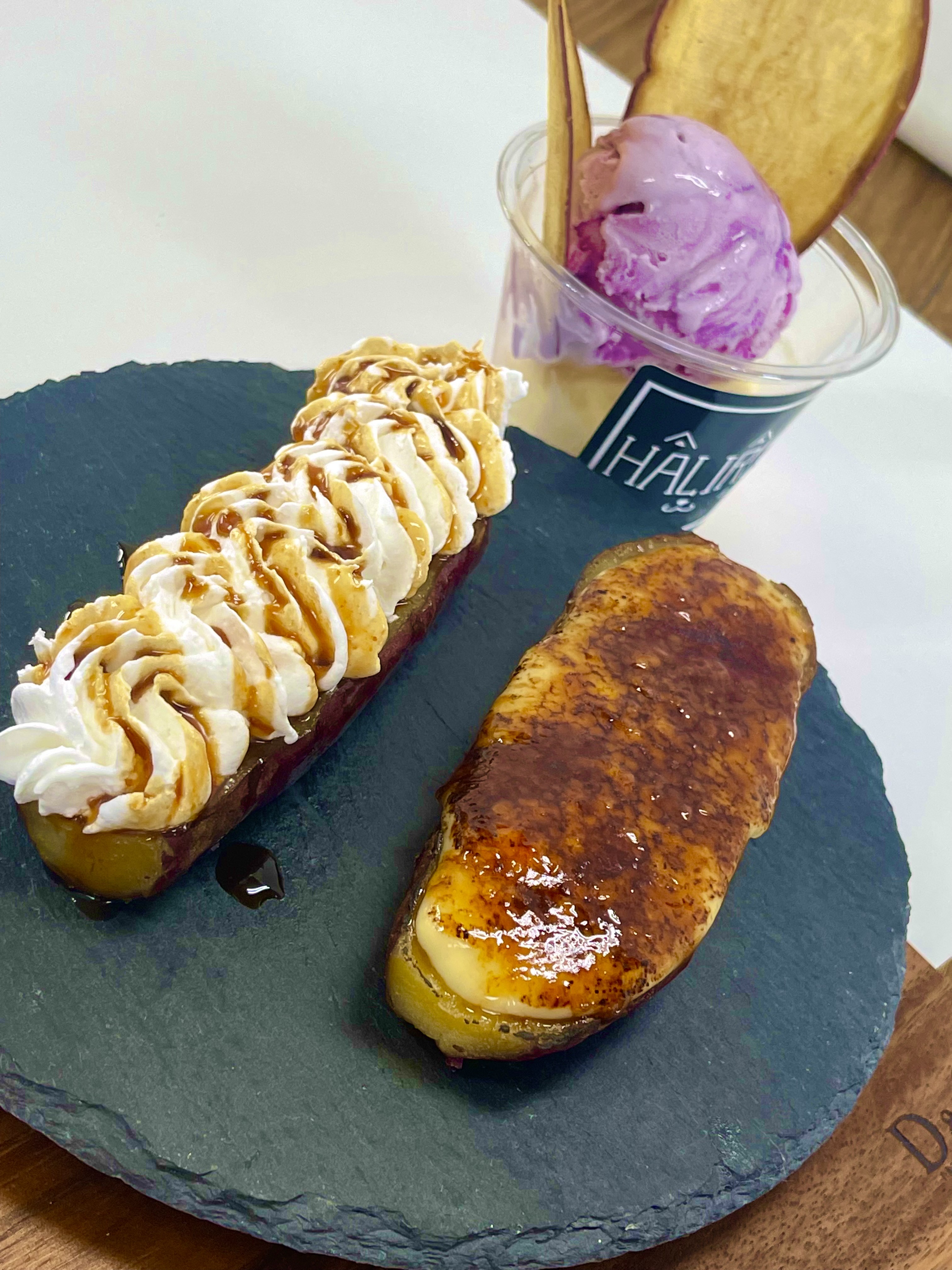 はりろは熟成、濃密、滑らか、ホクホクと様々な品種をご用意してます。食べ歩きの出来る1口サイズのカット焼き芋がとても人気でお土産にも最適です。