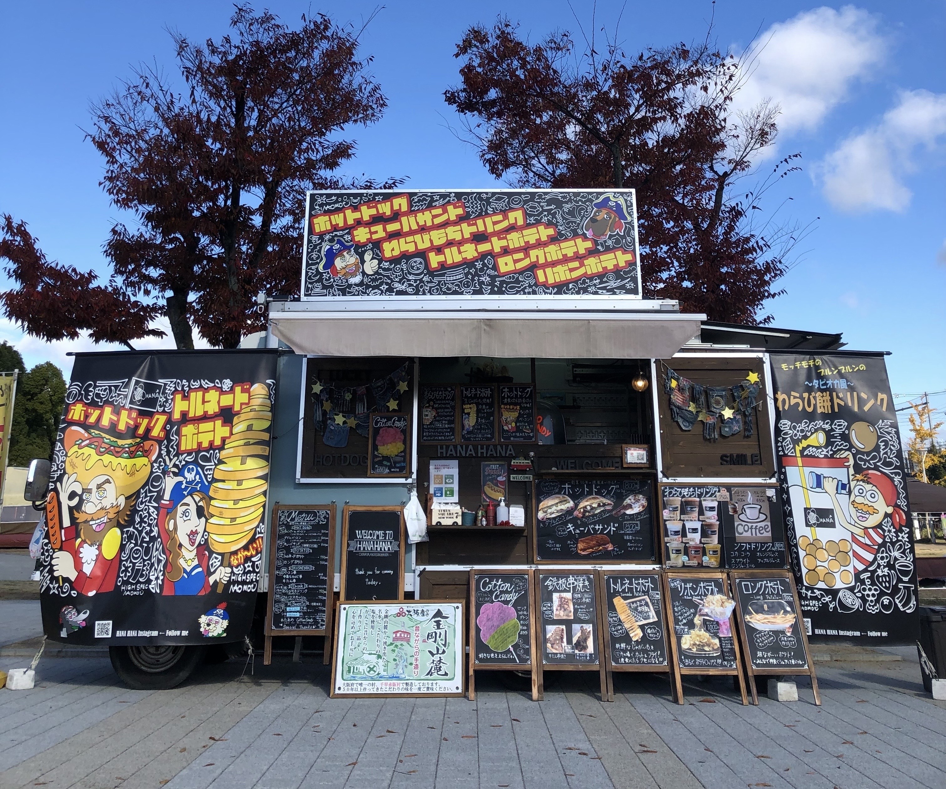 ホットドッグ、トルネードポテト、わらび餅入りドリンク、フランクフルト、綿菓子、ロングチュロス、ベーコン炭火焼き(串)、削りフルーツ、かき氷