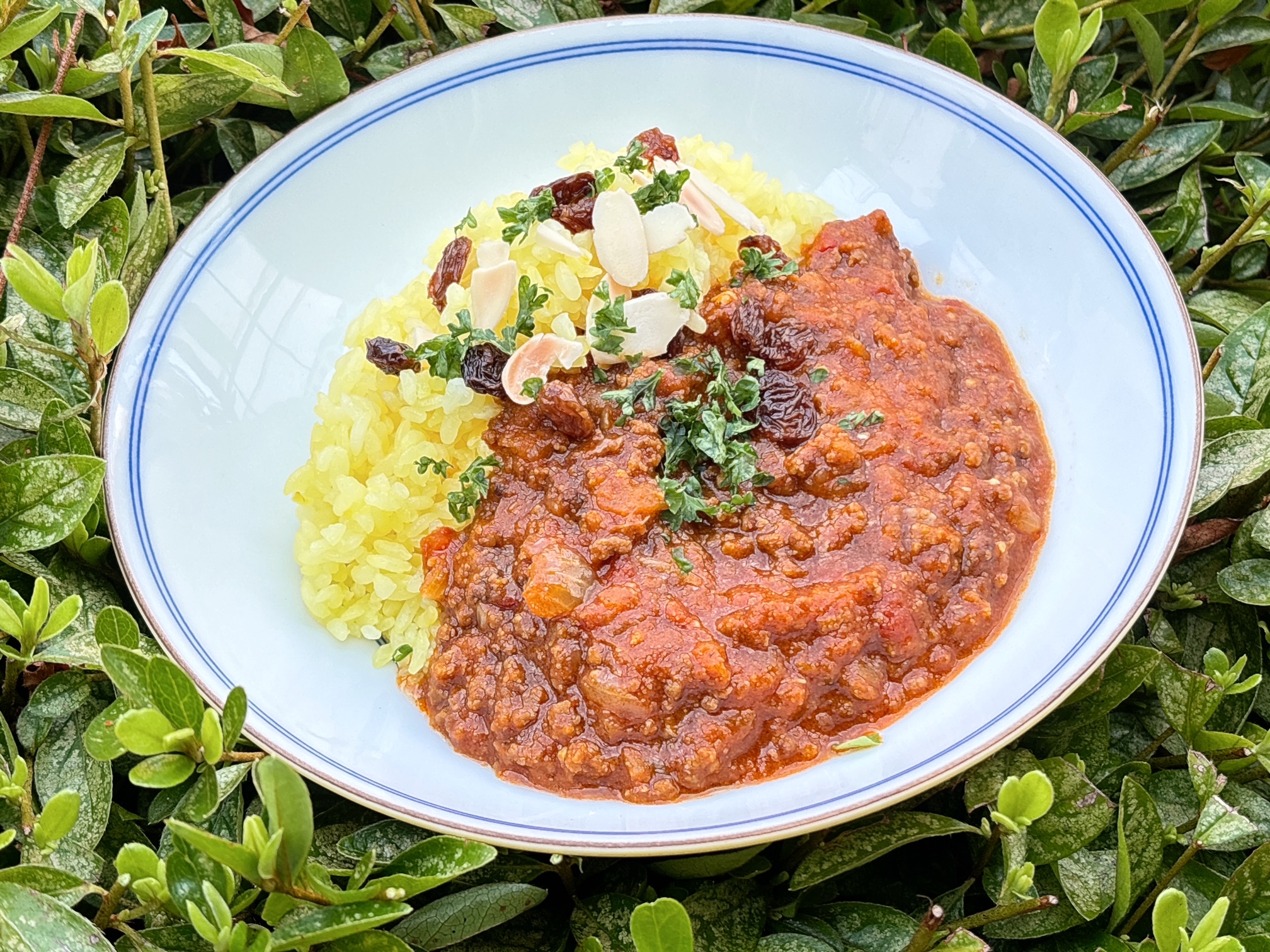 合わせるご飯は香り高く身体が喜ぶサフランライス❣小麦アレルギーの方のために小麦不使用でご提供することも可能です。