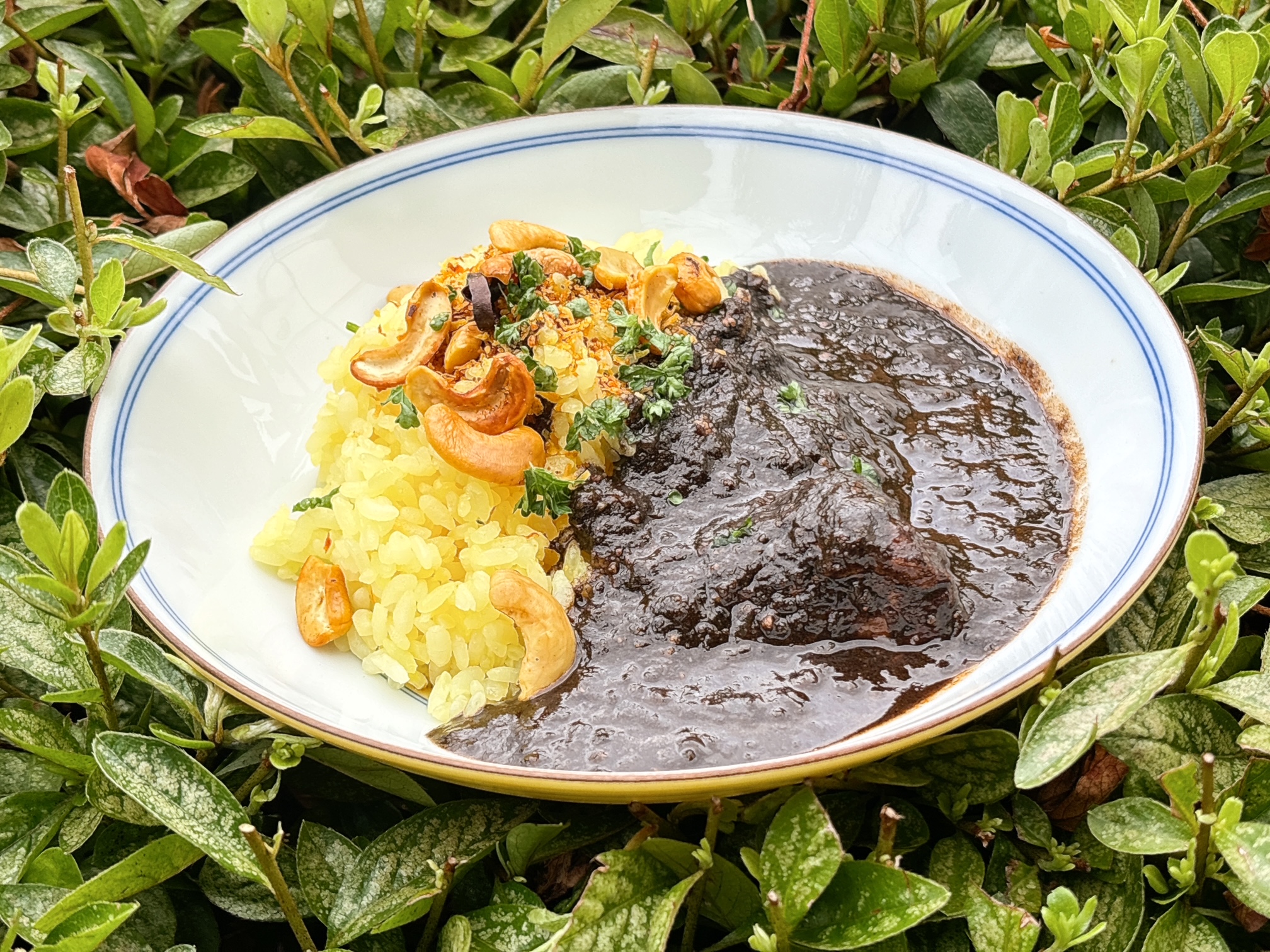 自慢の一品は真っ黒な黒カレー。玉ねぎたっぷり!2日間かけて仕込む個性的でシャープなポークカレーです。