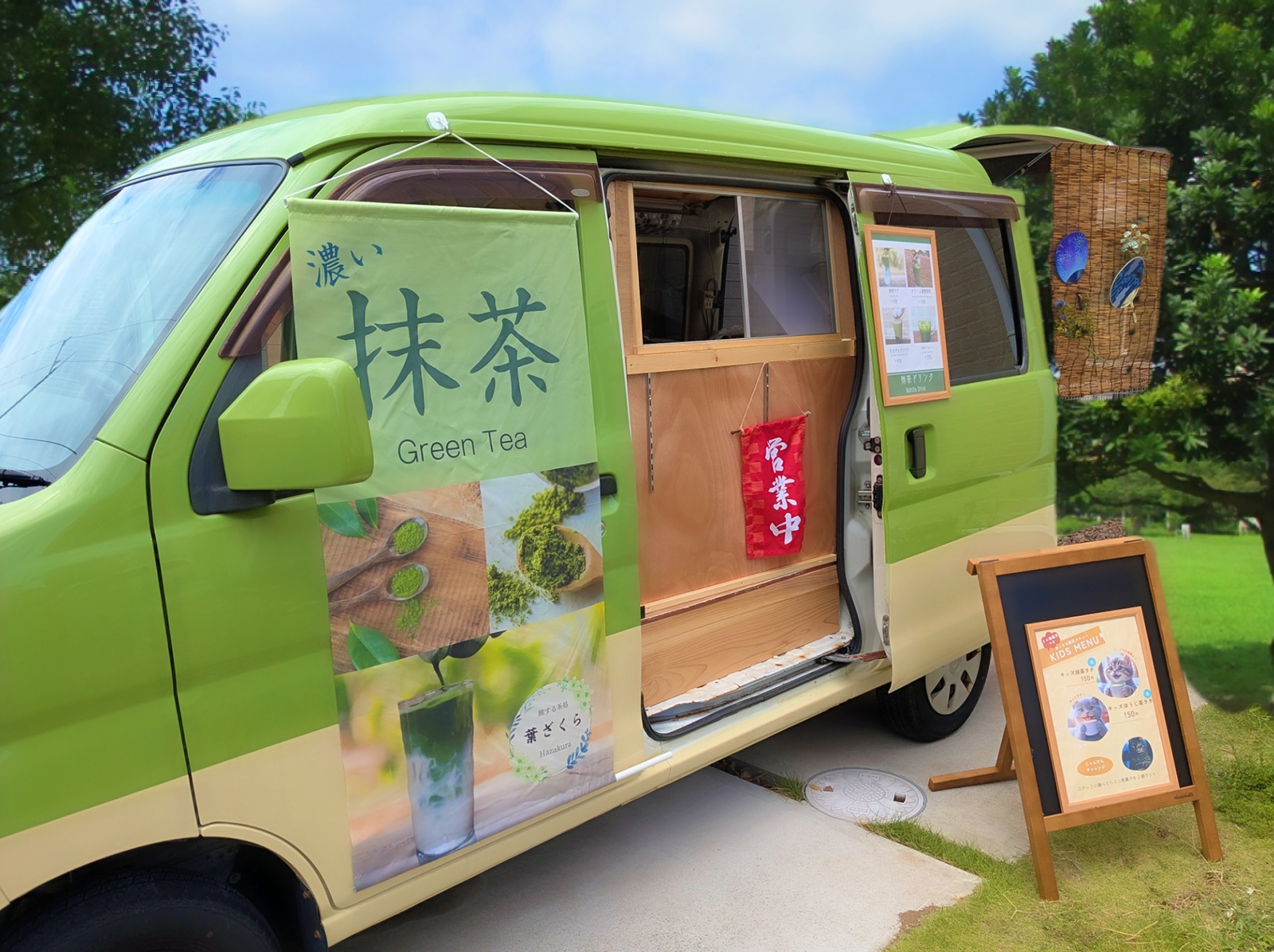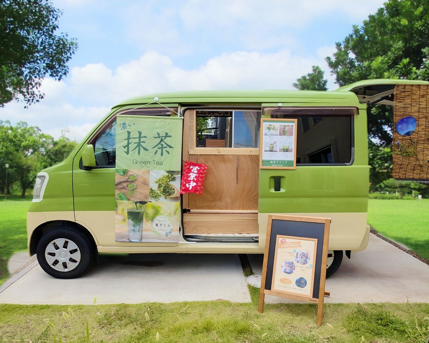 発電機は使用せず、ポータブルバッテリーにて営業しますので、周辺環境やお客様を煩わせません。車体もお茶をイメージしたグリーンとクリームの柔らかいツートンカラーで、どんなイベントにも馴染みます。