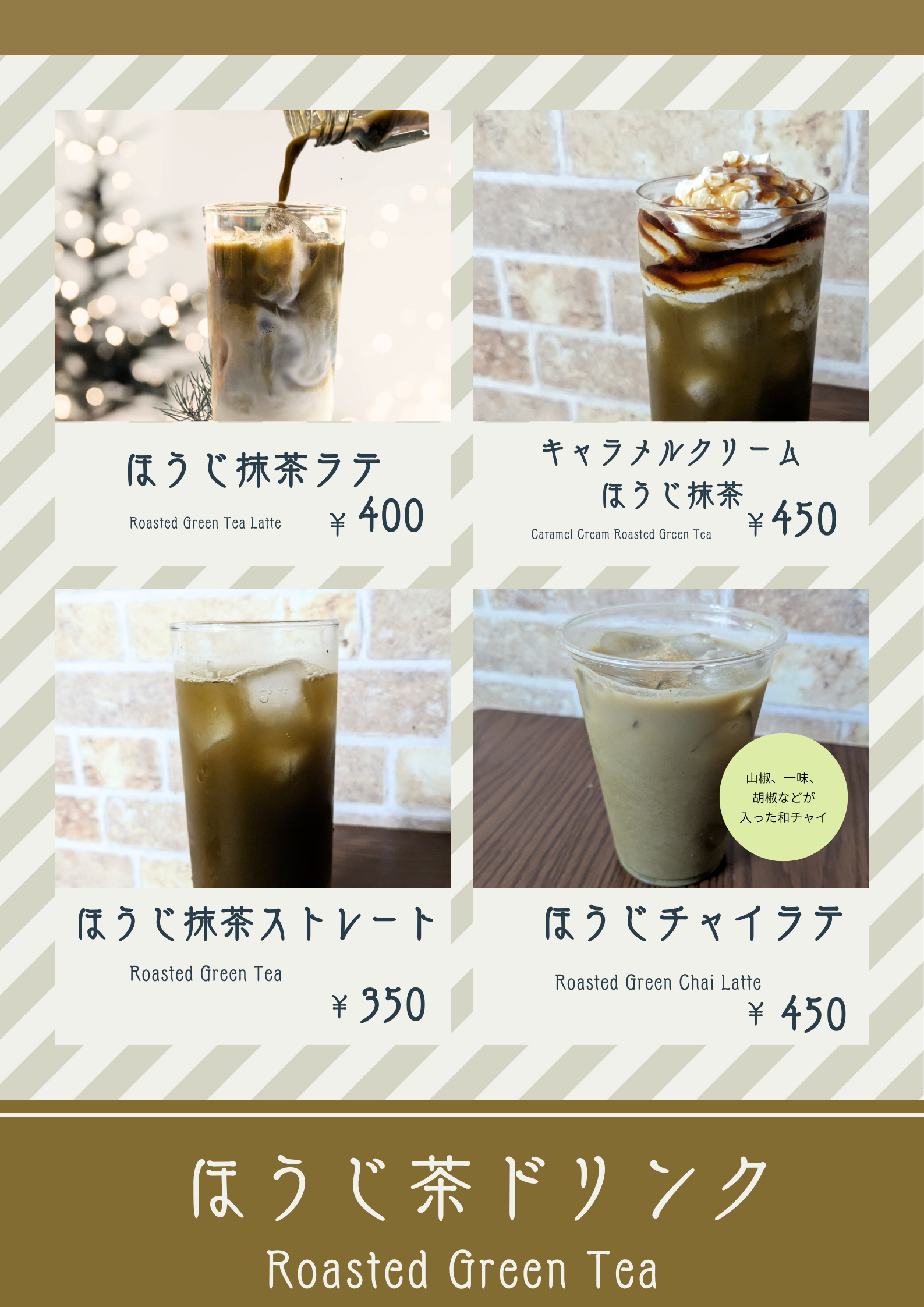 抹茶ドリンク、ほうじ茶ドリンク、抹茶アイス