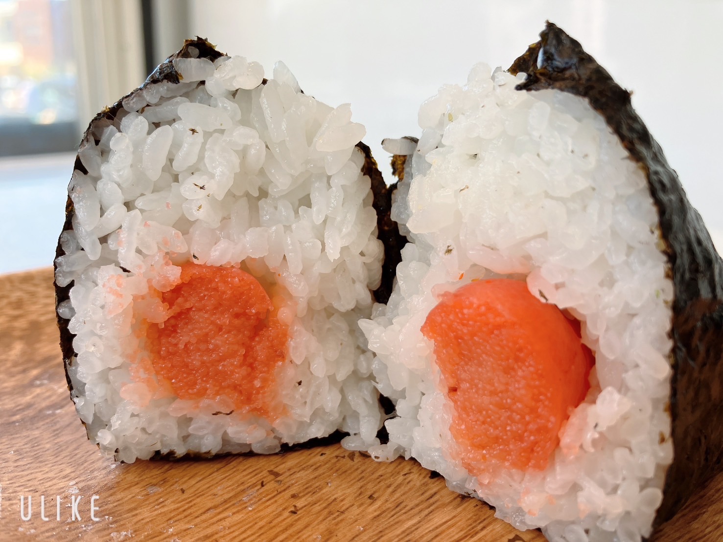 一個で満足できる爆弾おにぎりは、具材も3種類たっぷり入っており食べ応え抜群!