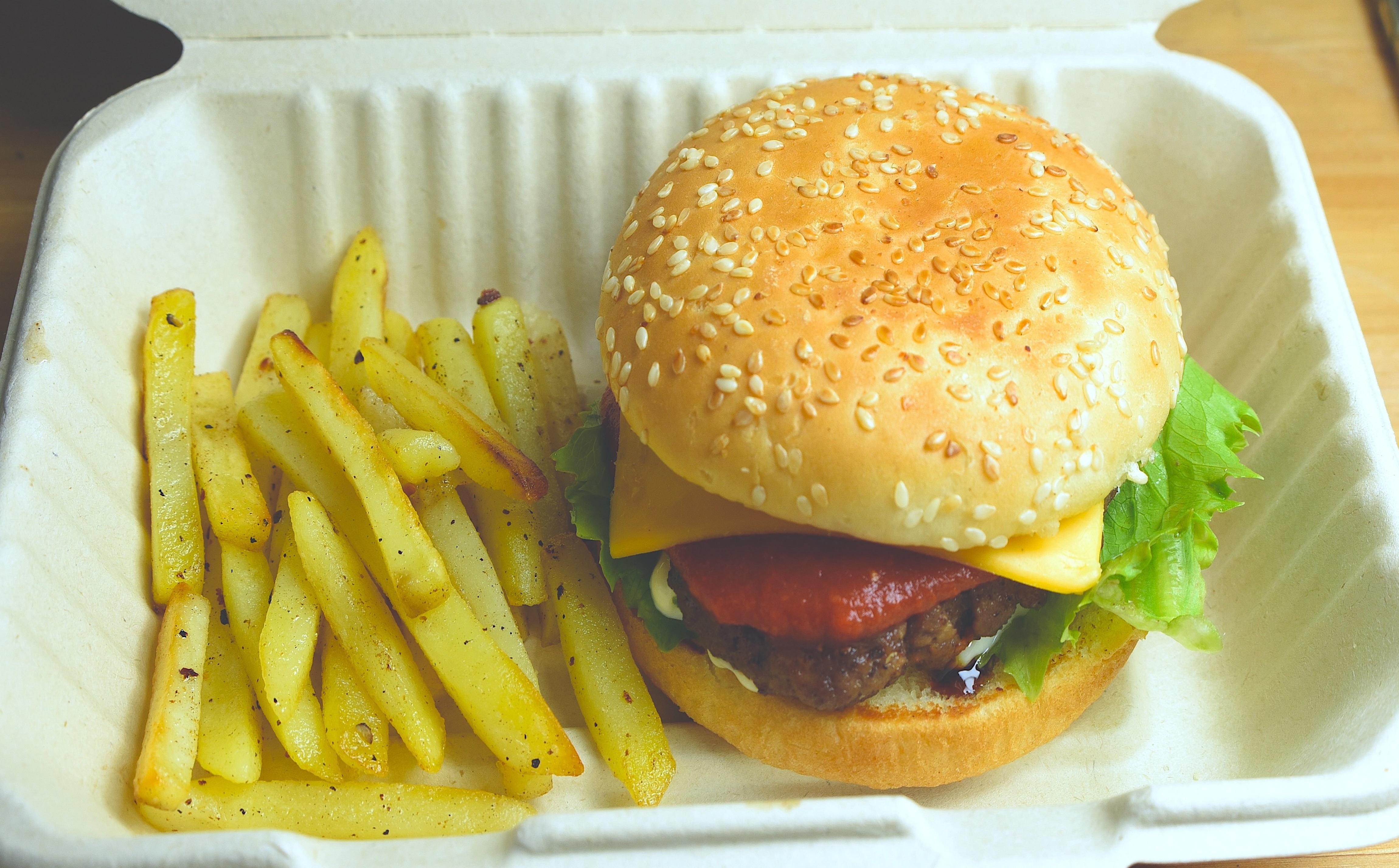 例)国産のジャガイモを使用したトルネードポテト、牛100%のパティを使用したハンバーガー、北海道産桜どりを使用した特製からあげなど