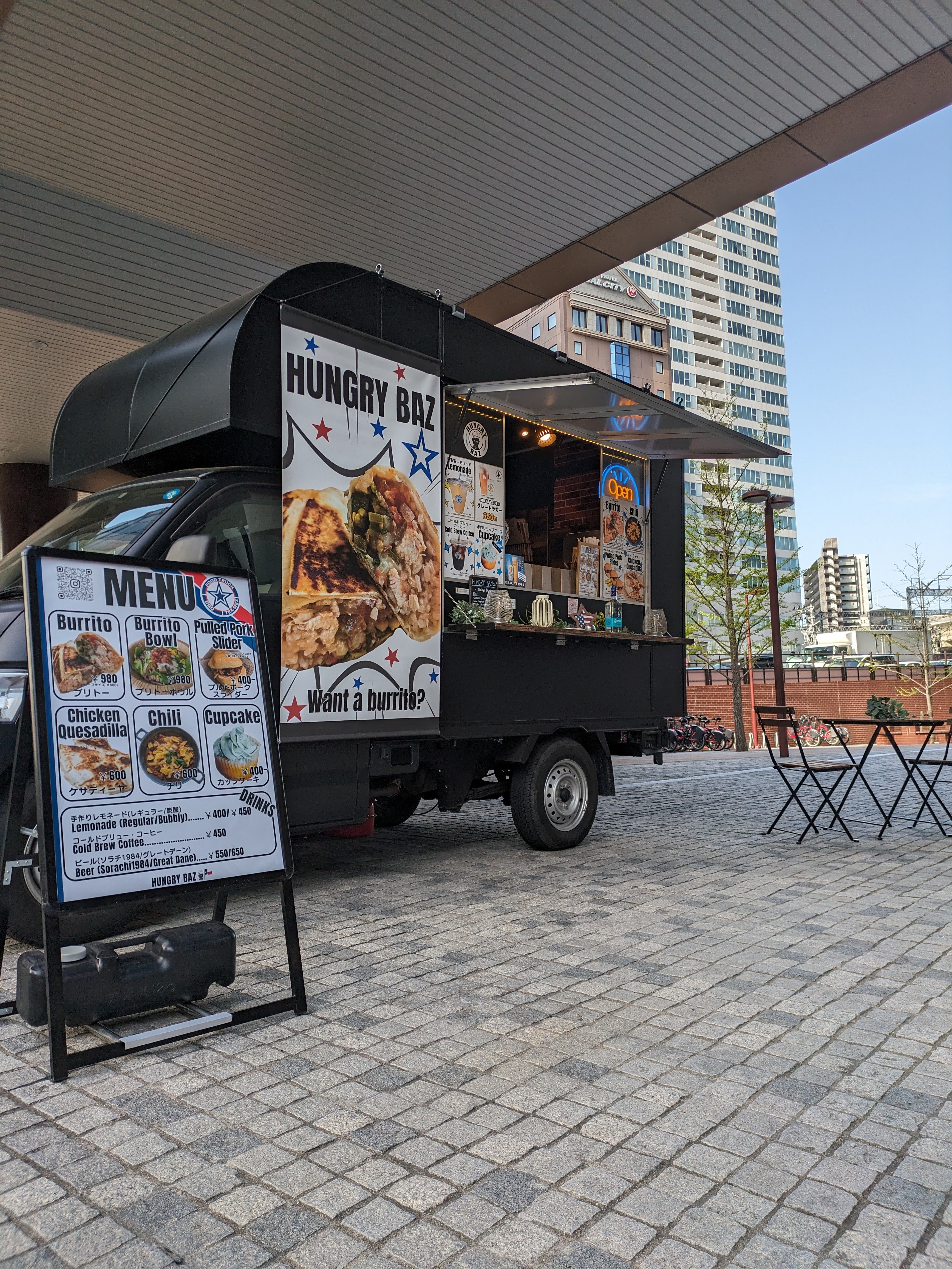 トヨタタウンエーストラックを使用している1tトラックなのでそれなりに存在感もありますが、駐車場1個に収まるサイズのスリムなキッチンカーになっております。