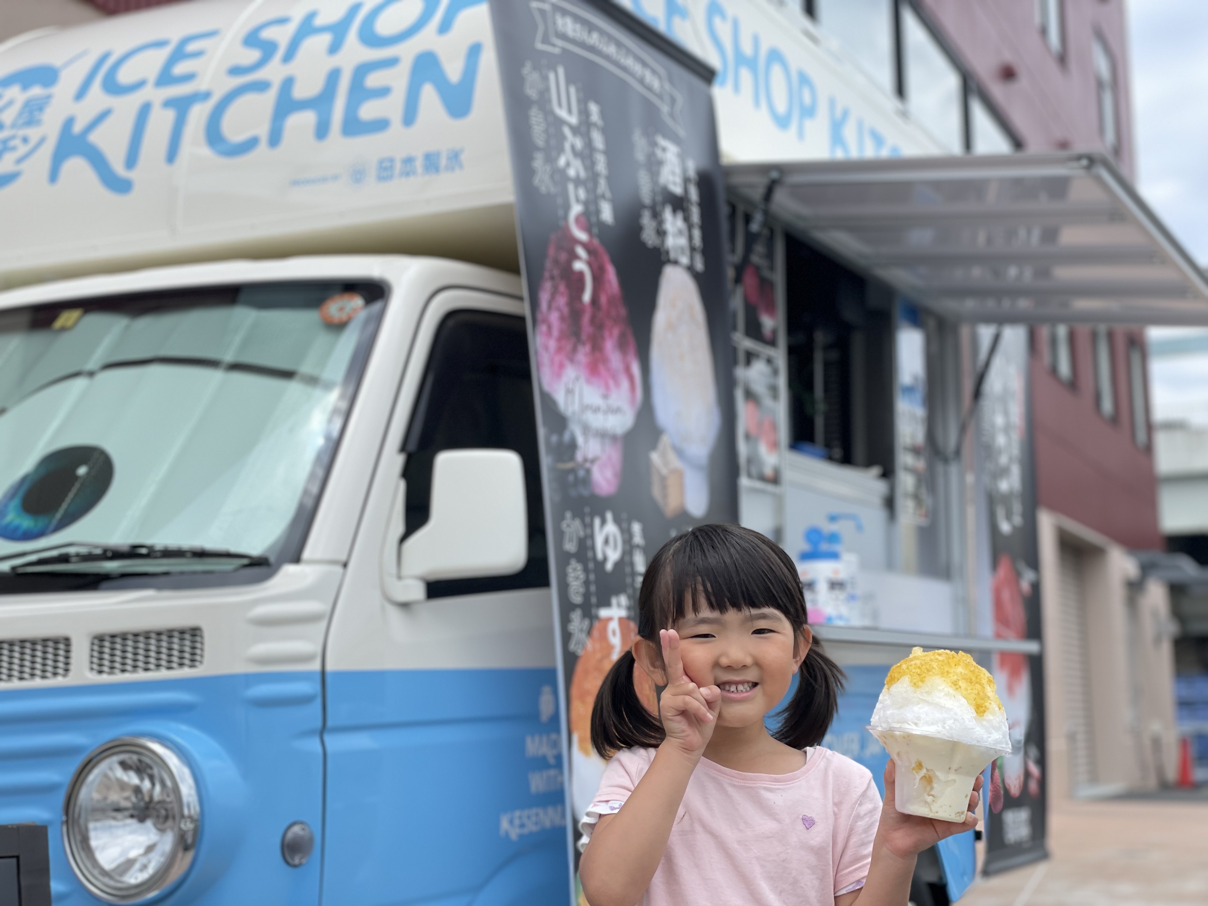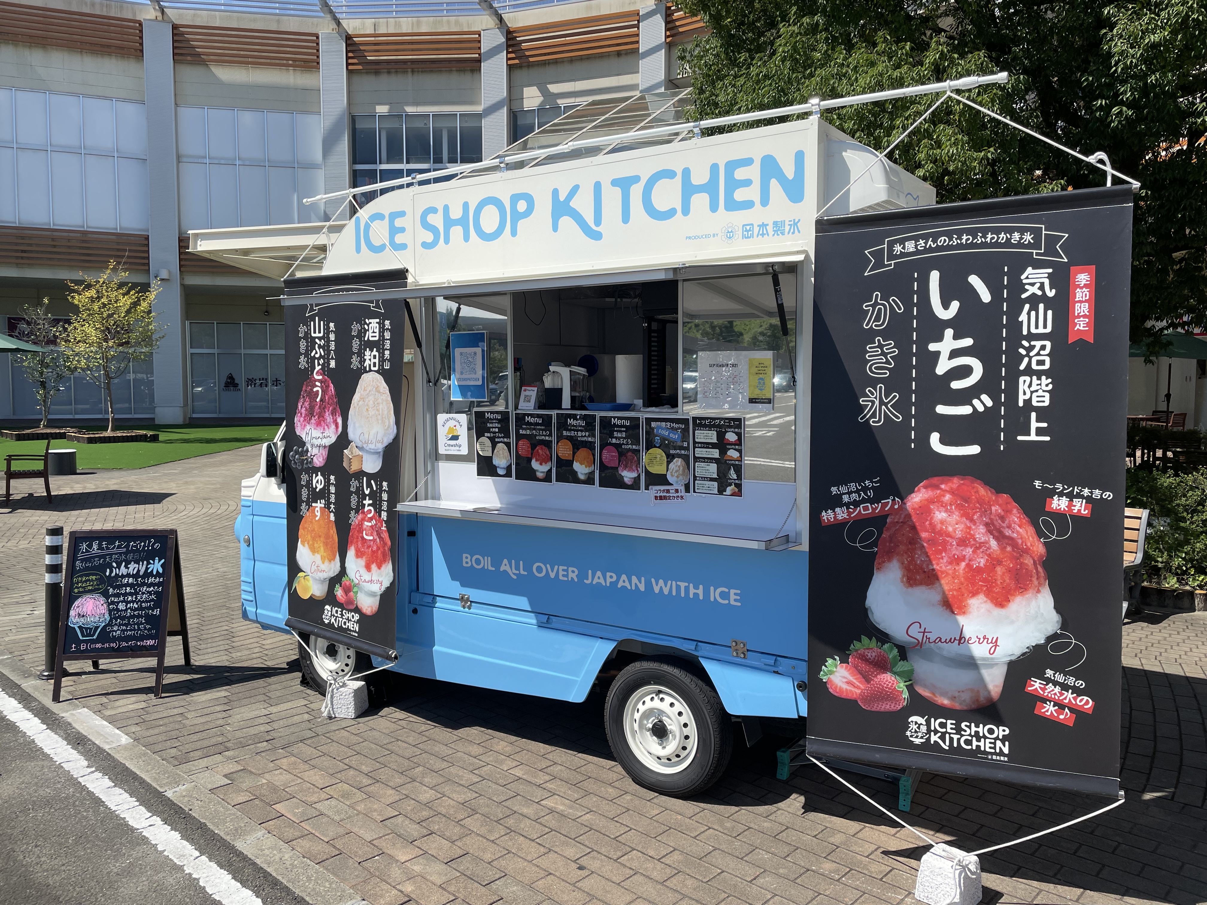 氷屋キッチンのキッチンカーは、可愛くオシャレなデザインなので、どんな場所でも雰囲気を壊さず、親しみやすくなっております!