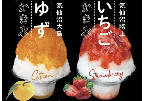 気仙沼の素材を活かしたメニューが豊富!カキ氷に使用する氷は、気仙沼の湧水から作られたもの。シロップは、気仙沼で作られた果実や酒粕!オール気仙沼のメニューで気仙沼を楽しんでください!