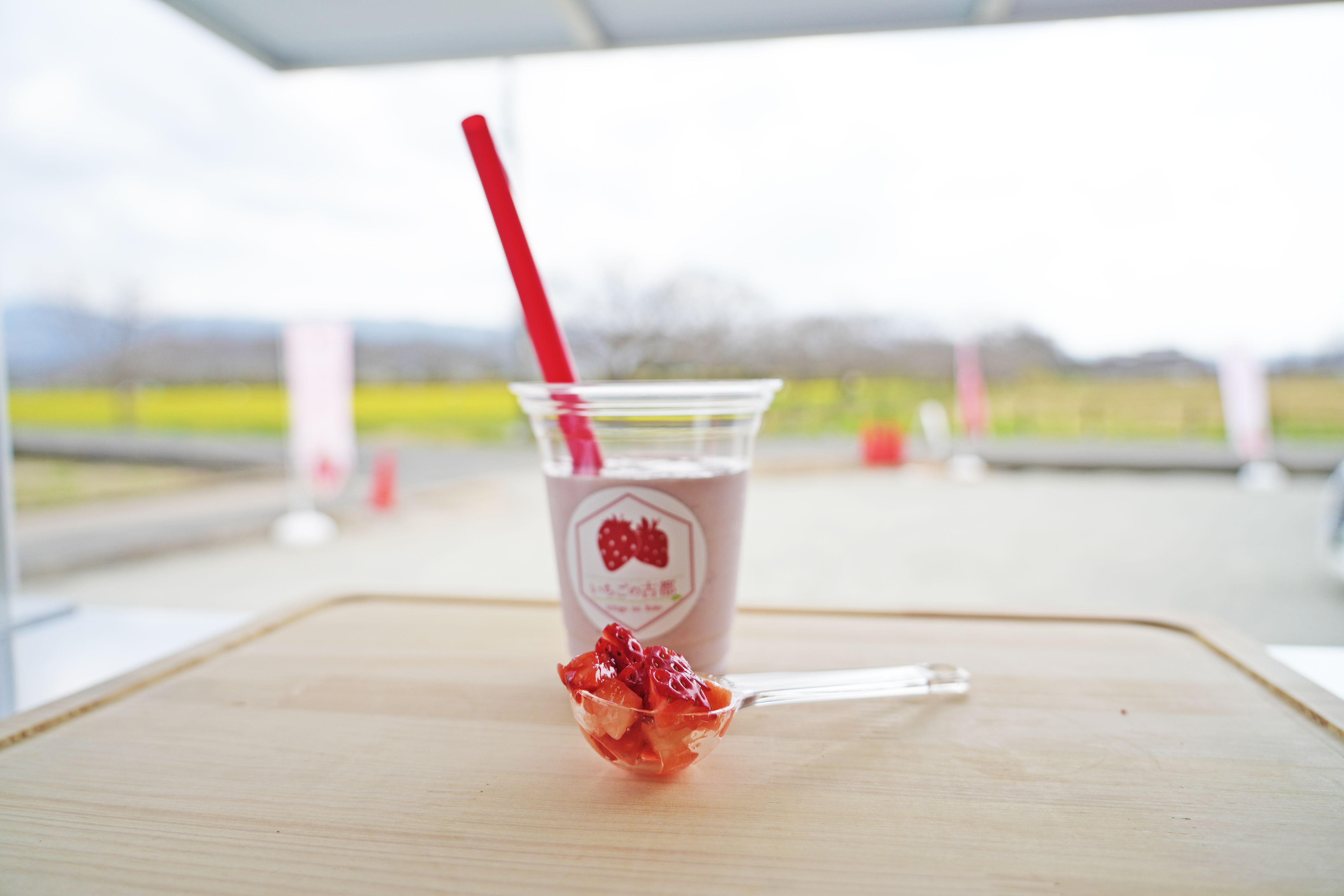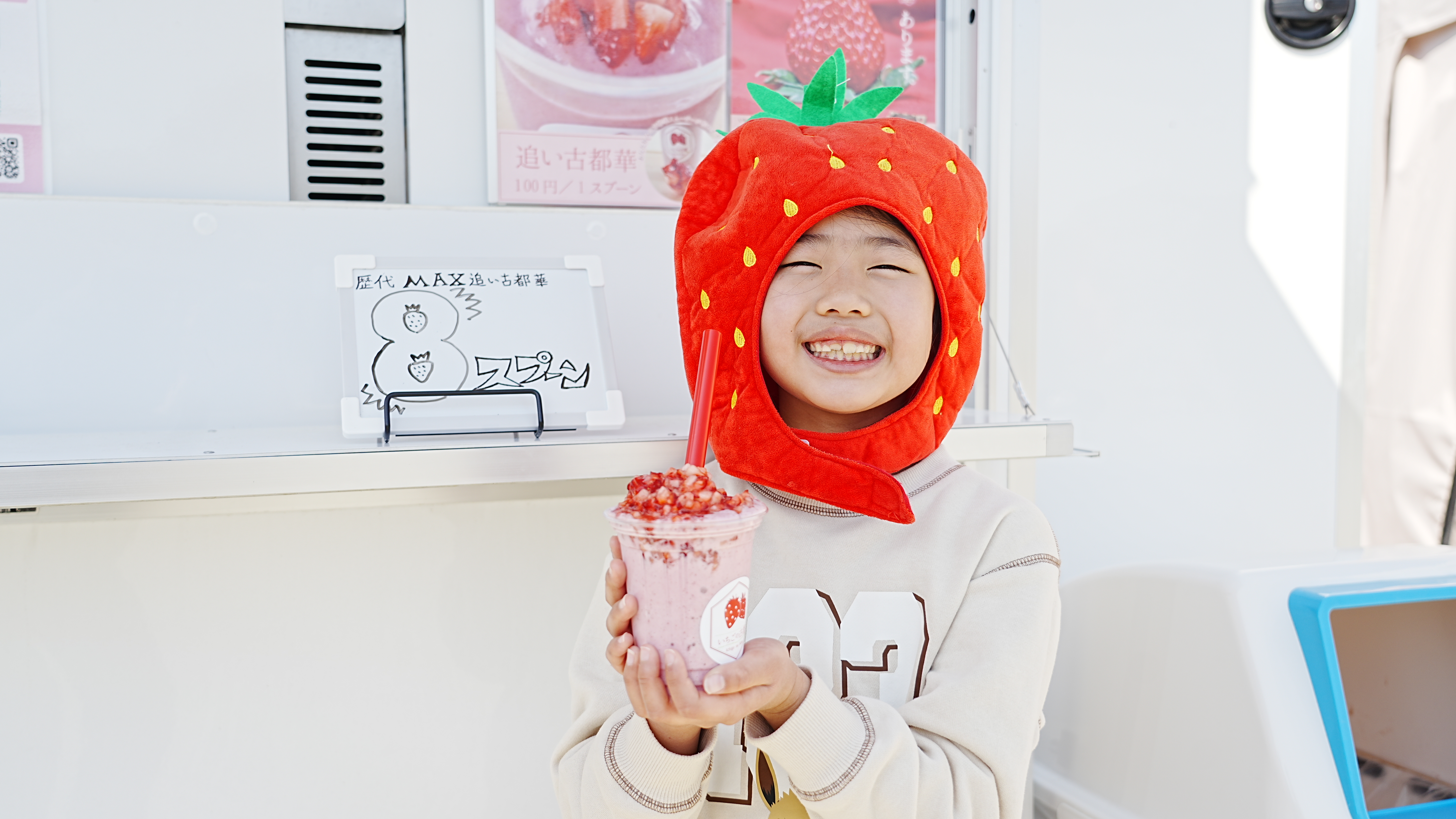 1杯100円〜で出来る追い古都華。いちごのスムージーを自分なりカスタマイズできるように考えました!提供できる時期は限られていますが、いちごを最大限に味わえる特別な体験になります。最大8杯という猛者も現れました!