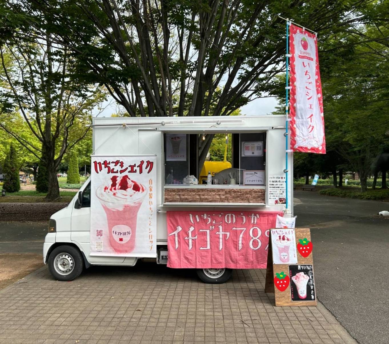 ①いちごシェイク ②削りいちごのかき氷