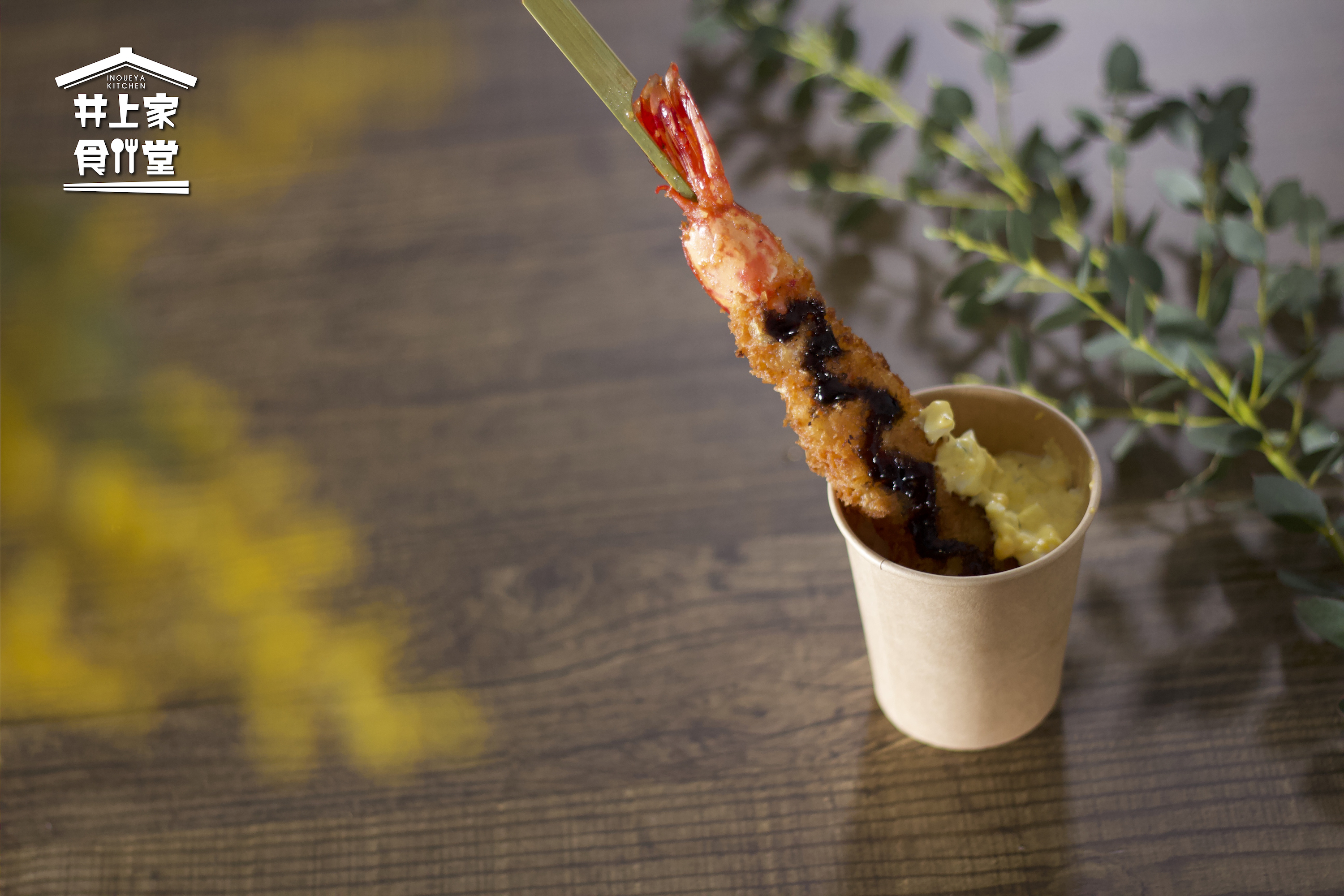 井上家食堂自慢のおすすめサイドメニューと言えば「特製タルタルで食す大海老のフライ」。もちろんオリジナルの謹製えびめしソースとの相性も良し。