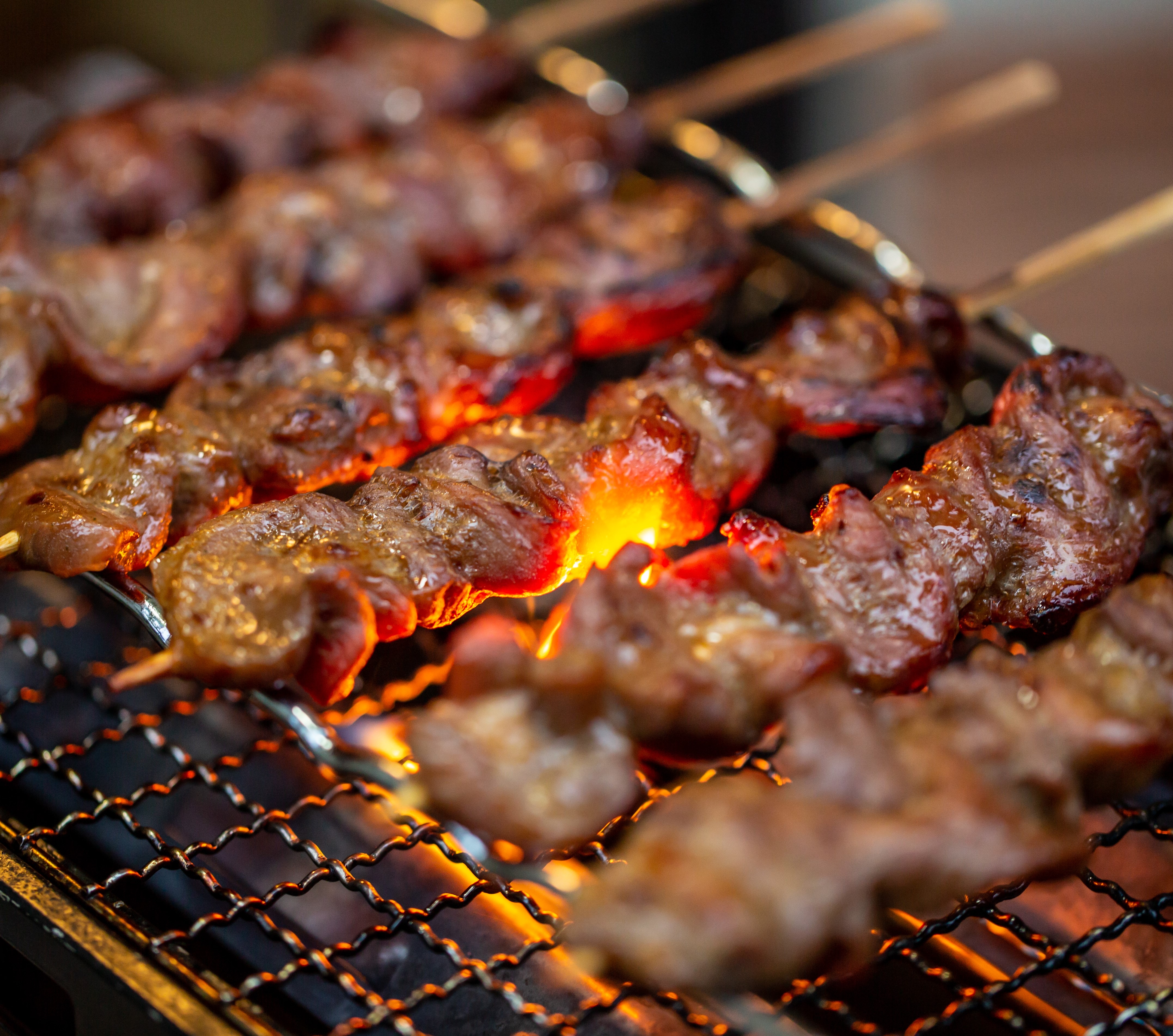 ガパオライス、串焼き、タピオカドリンク、タイビール