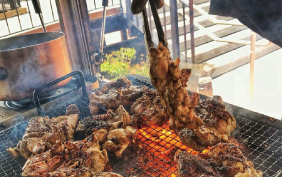お客さまから見える位置にグリルが備えつけてあるので、お肉を焼いてる様子が良く見えます。煙を上げて調理している姿はライブ感たっぷり。