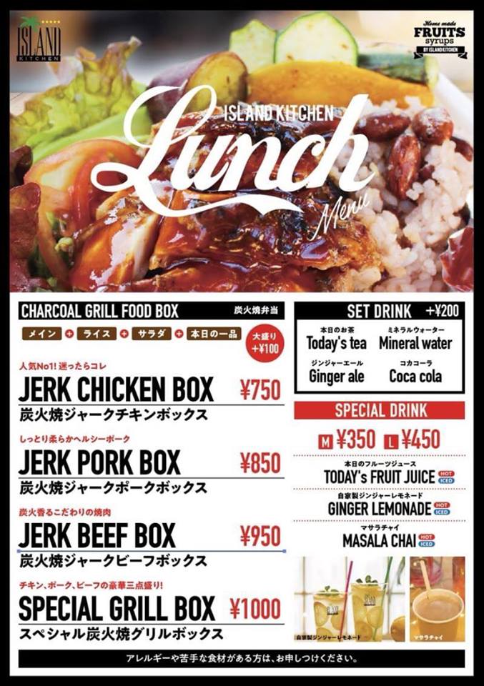 まず食べて頂きたいのはやっぱりジャークチキ ン。ハーブの爽やかさとスパイスの旨味が詰まった味付けは、一度食べ たらやみつきに!自家製シーズニング(ハーブ & スパイス)に漬け込 んだアイランドキッチン自慢のジャークチキンです。オフィスのランチ に!イベントに!マルシェに!様々なシーンでお届けします♪