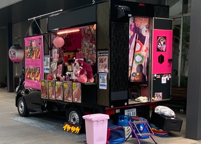 弥栄では、ピンクに愛と平和、優しさを想います。みなさんがキッチンカーで笑顔になっていただけたら、を胸に誇りを持って取り組んでいきます。