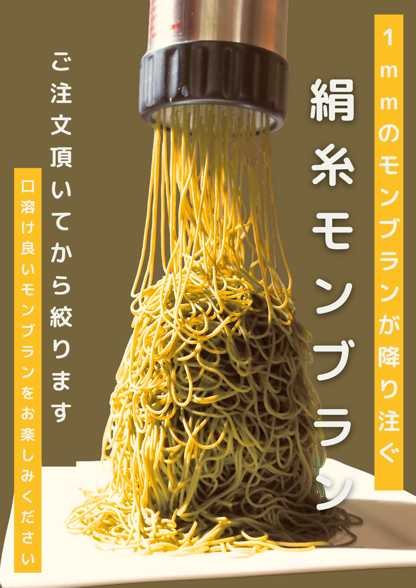 1mm濃厚なモンブランの口当たりをお楽しみください。