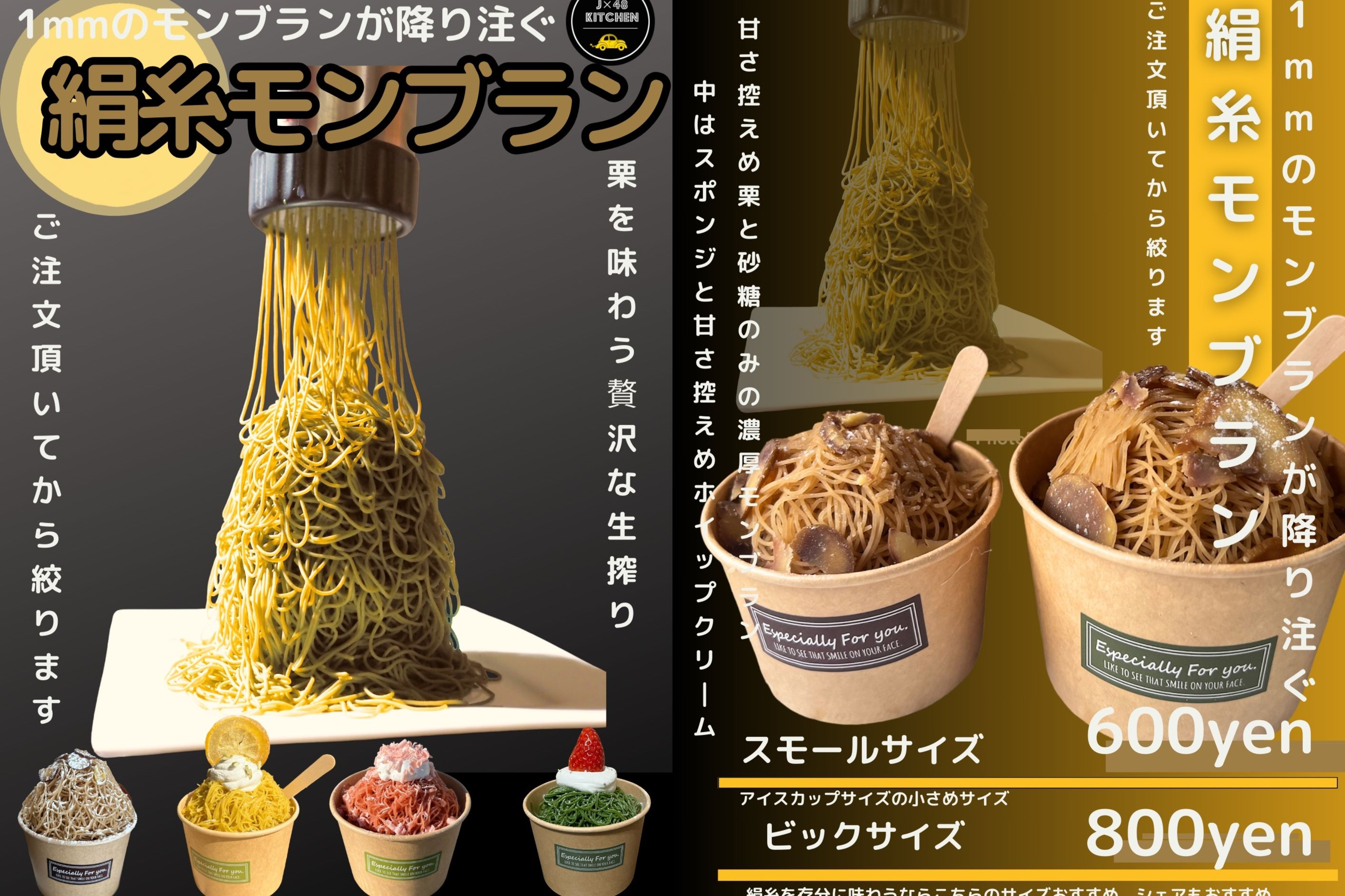 肉巻きおにぎり (夏)アサイボウル (秋)生搾りモンブラン(冬) りんご飴