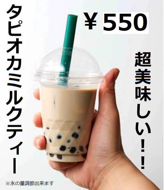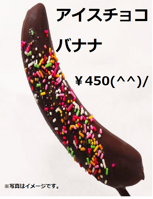 アイスりんご飴、アイスチョコバナナ、タピオカ類、クリスピーチキン、フリフリポテト