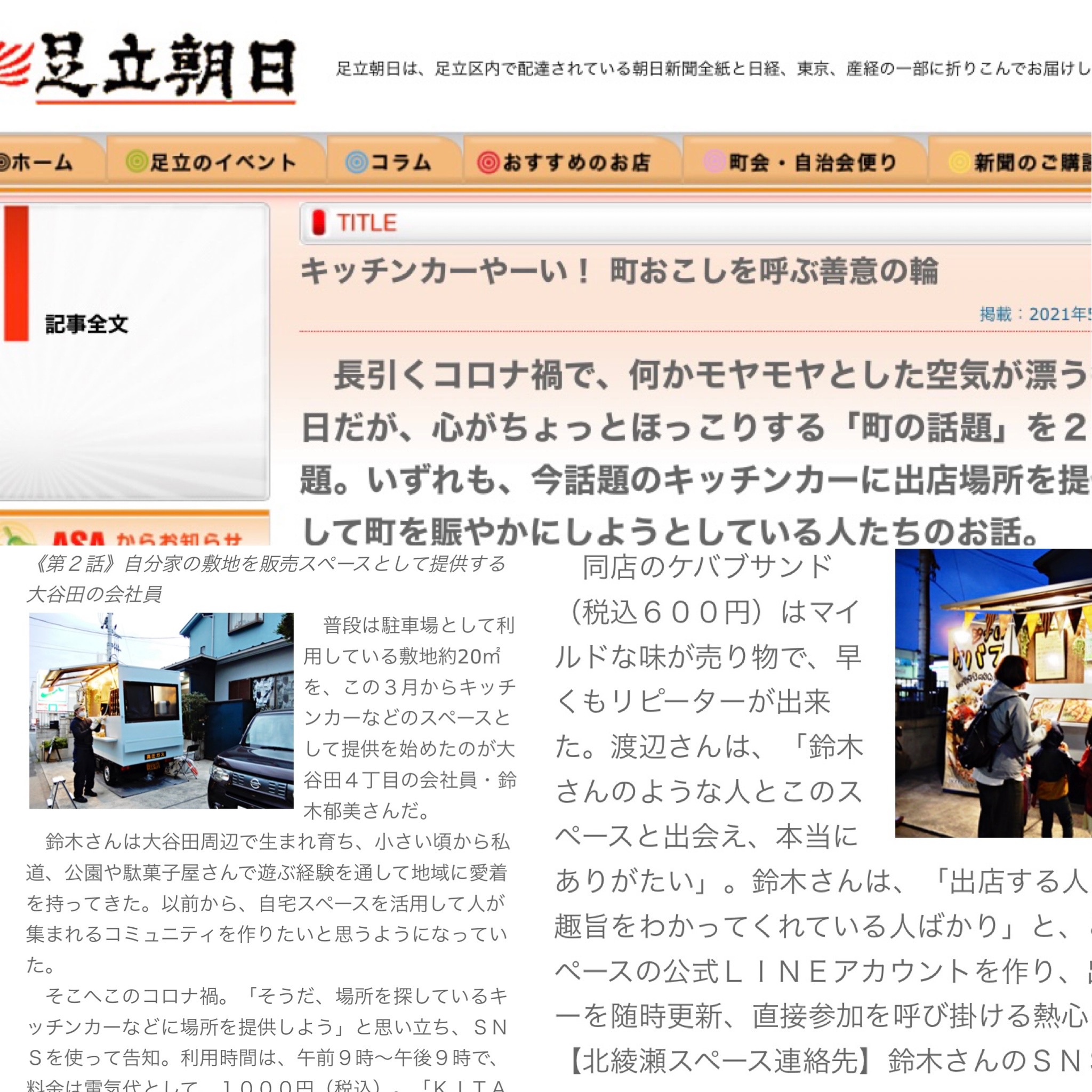 平日は地域密着出店(足立区)を出店戦略とし、コロナ禍における地域活性化に取り組む様子が新聞やTVニュースに取り上げられる。