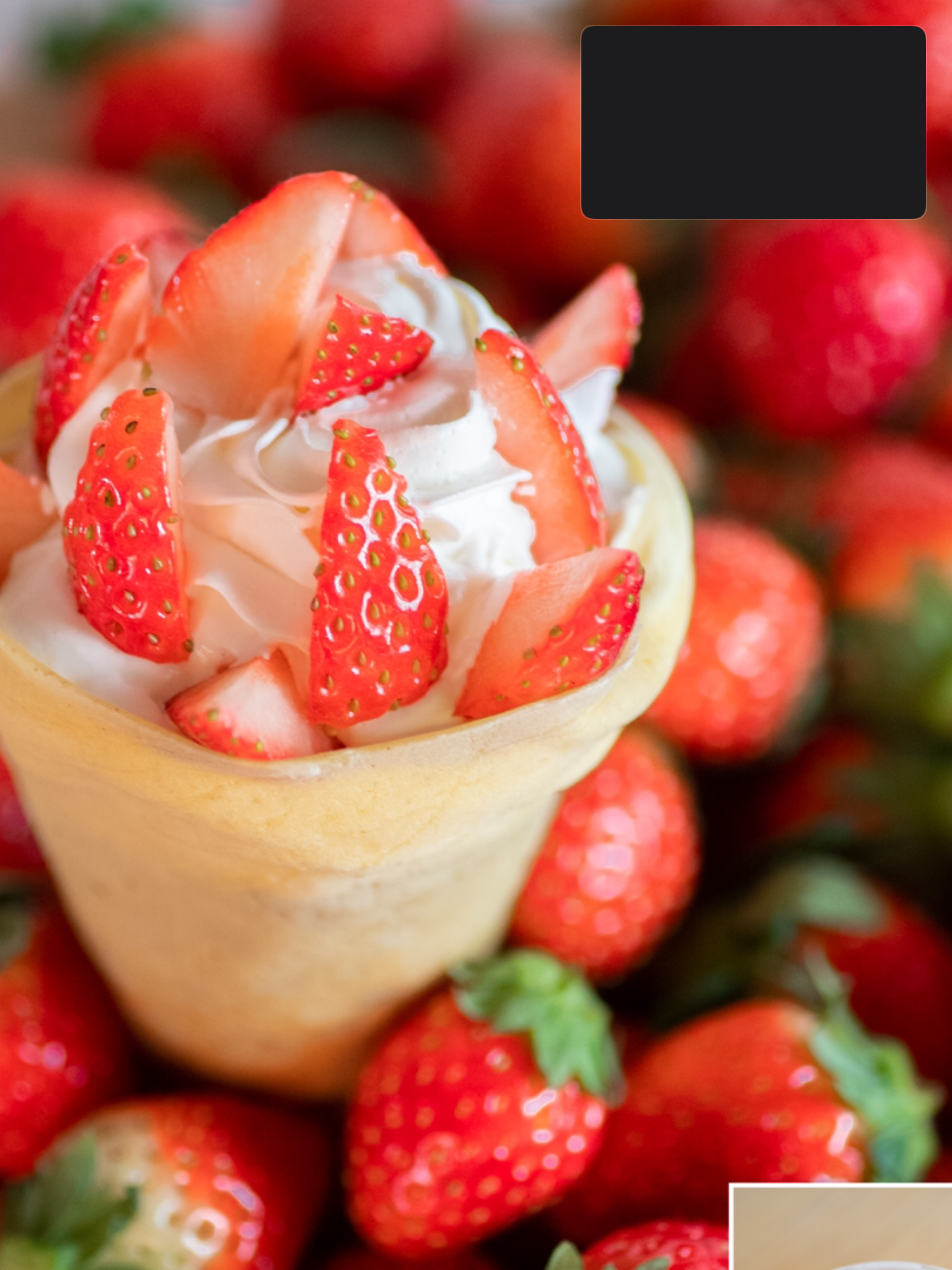 大きめのカップにたっぷりいちごが入りますので、最後まで美味しく食べれるように一工夫しております^ ^