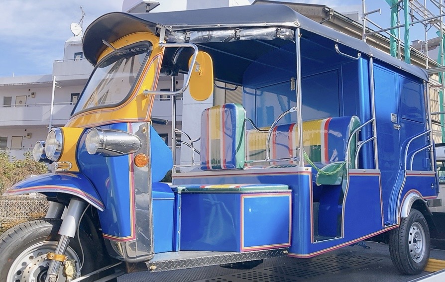 おしゃれな外観を邪魔しないトゥクトゥクはどんな場所でも魅力を発揮し、子供ならテンションが上がり一緒にカメラ撮影をして、ご年配は昔の3輪車を思い出し、、、。注目するのは間違いないです。