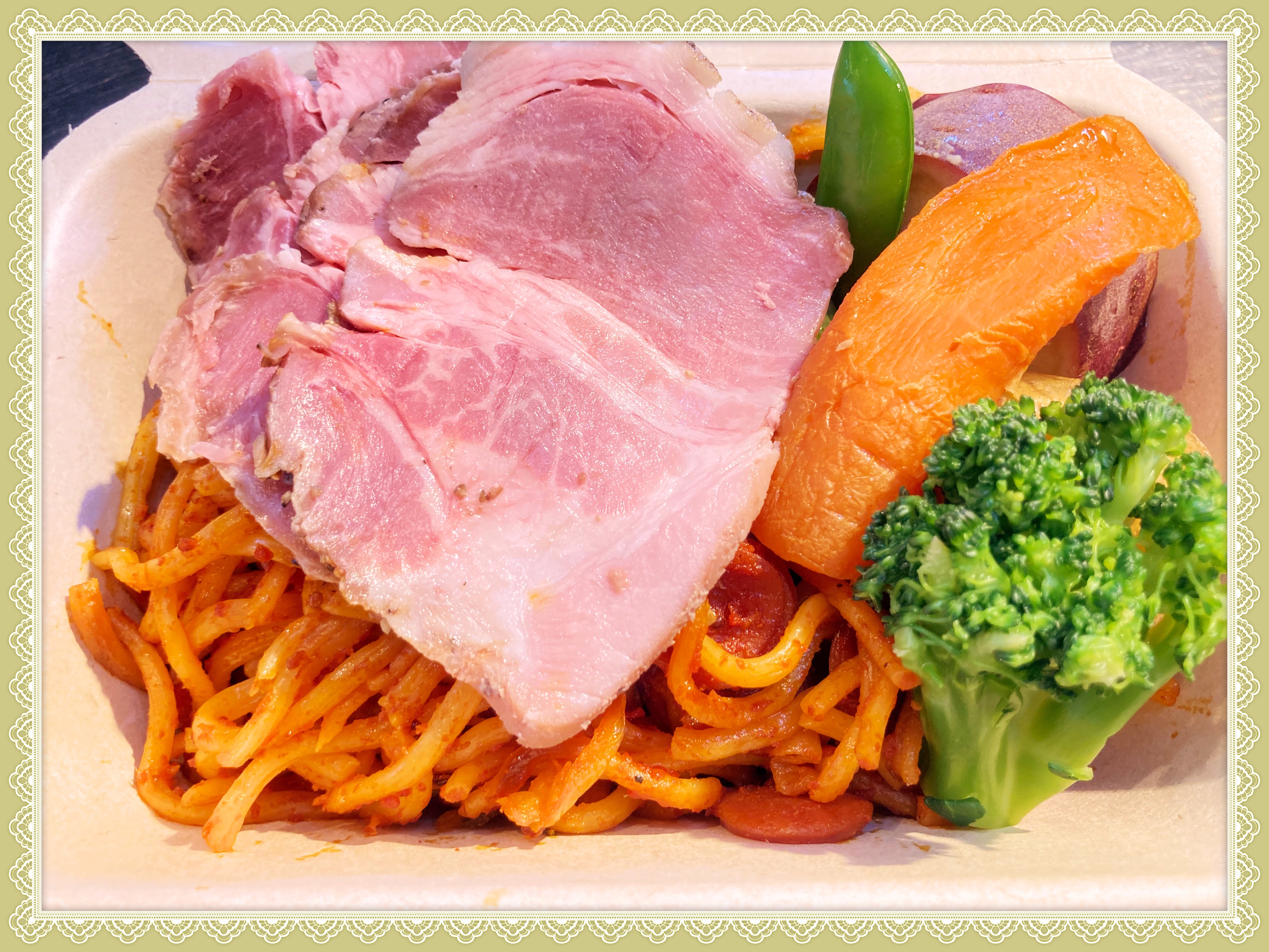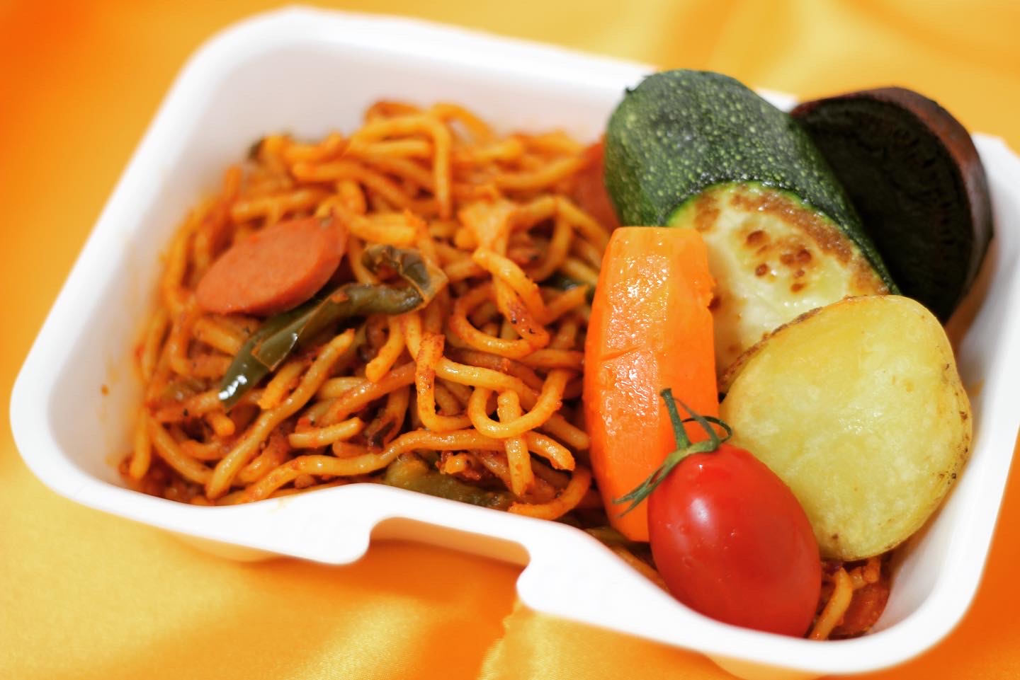 鎌倉Dining由比っとの料理は付け合わせの野菜からトッピングまで、シェフがフレンチの技でまとめ上げた洋風焼きそばです。