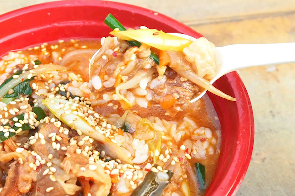 韓家 ( かんち ) を街中やイベント会場で見かけたら、是非最初に食べて頂きた いのはプルコギ。辛いイメージがある韓国料理ですが、プルコギは辛味がなく、日本で言うところの「すき焼き」みたいなイメージだそう。ご飯がどんどん進んでしまいそうですね。韓国料理も日本の味覚も知っているからこそのチョイスで、韓国料理の入門として最初にぜひ食べて欲しい一品です!