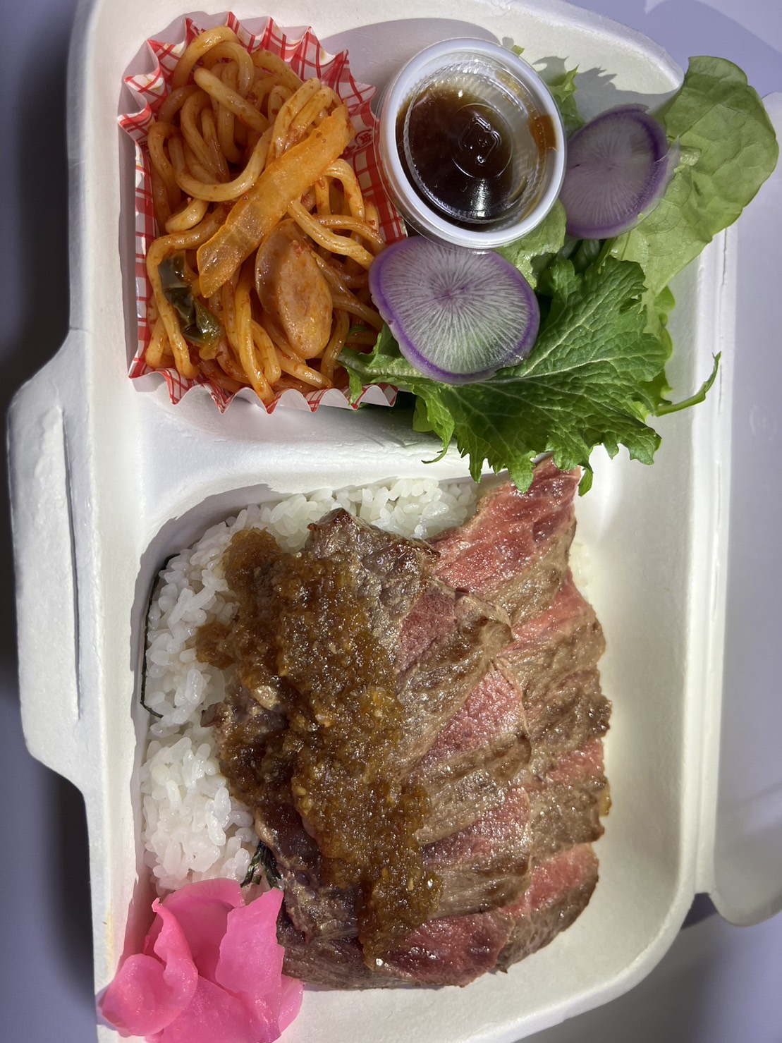 ふぐの唐揚げ、牛サーロイン弁当、牛サーロイン串、豚焼肉弁当、鴨つくね焼き、和牛ステックコロッケ、フリフリポテト、かき氷、にゅう麵、アルコール類、ソフトドリンク類