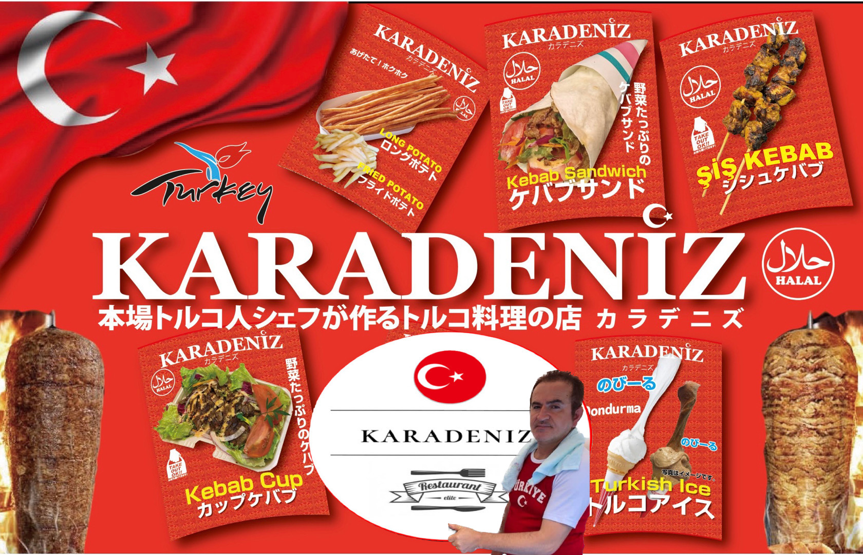 トルコ、黒海地方出身、2000年から名古屋を中心にトルコ料理店を経営しておりました。今はキッチンカーのみで各地イベント等出店させて頂いております。弊社のケバブは本場の味にこだわっております。ぜひ一度カラデニズのケバブをご賞味ください