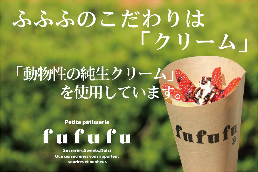 ふふふは、有名乳製品メーカーの動物性の純生クリームを使用した、こだわりの クレープやどら焼きサンド・ジェラート等を販売しています。