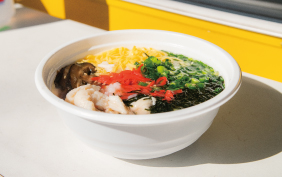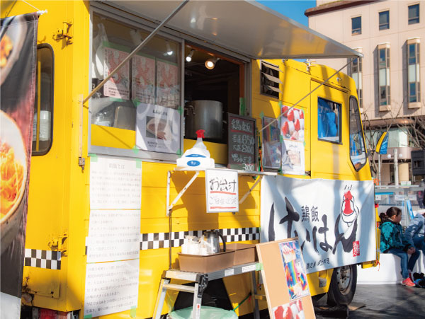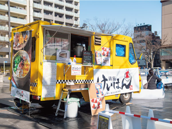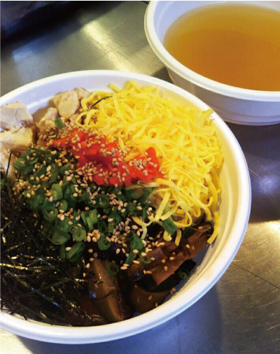 もちろん食べて欲しいのは『鶏飯(けいはん)』!そもそも鶏飯をあまり知らないという人もいるかもしれません。鶏飯(とりめしではなく、けいはんと読むんです)は、もともと鹿児島県奄美大島で愛されてきたご当地料理で、とりめしのような炊き込みご飯ではなく、出汁と一緒に頂くお茶漬けのような食べ物です。お茶碗に盛ったごはんに、ほぐした鶏肉と錦糸卵、椎茸などを入れて、鶏からとった贅沢な出汁スープをかけて食べます。ご飯と出汁は別々で出されるので、出汁が入っていない時と、入っている時2回分の味わいを楽しめるのも鶏飯の魅力です♪お店で食べると千円を超えてしまうのですが、キッチンカーではより親しみやすいようにとリーズナブルな値段で提供しています。