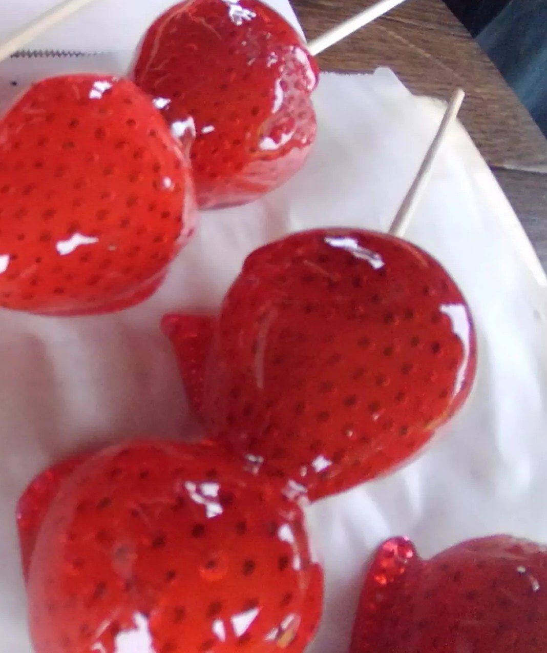 約、1月~5月までのシーズン限定(要相談)になりますが、お子さま~大人まで人気で、ついつい写真を撮りたくなる真っ赤な「あま~い」いちご飴になります。