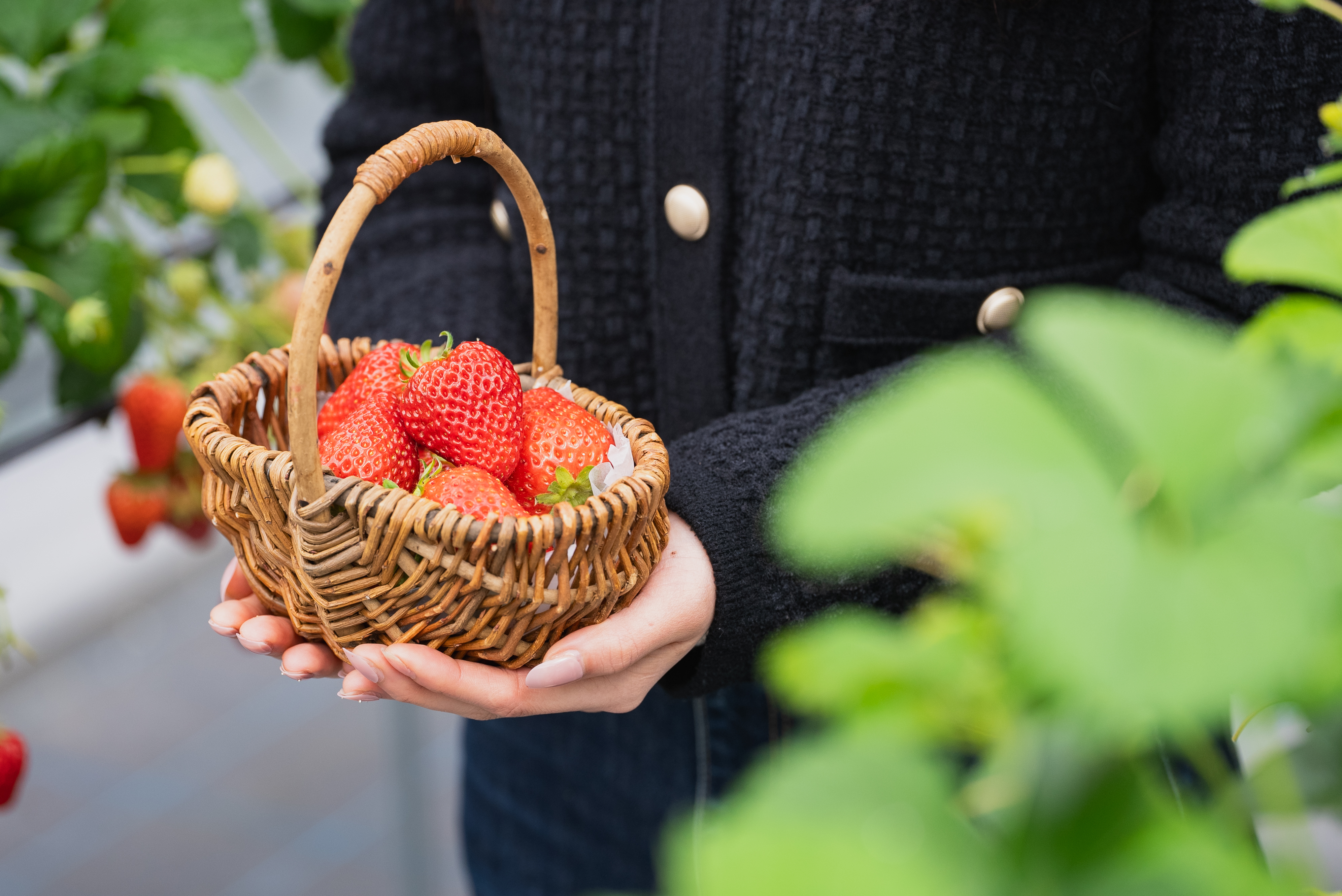 完熟のタイミングで収穫されたいちごをそのままスイーツやドリンクに。