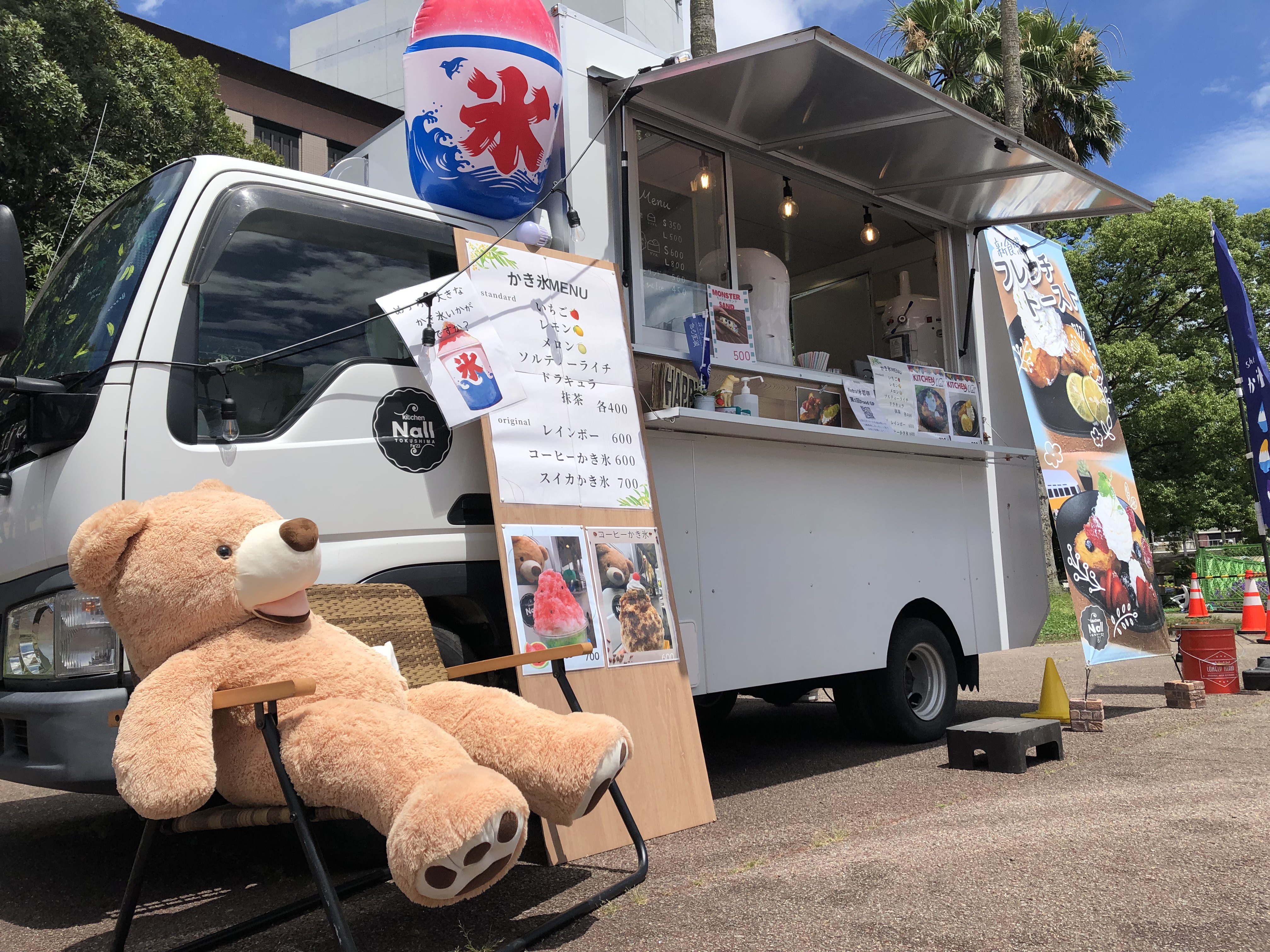 フレンチトースト•フルーツ大福•アイスクリーム•アイスサンド•くまちゃんアイス•かき氷・パフェ•ドリンク類•揚げ物(フライドポテト•唐揚げ•フィッシュカツ)・スープ・丼もの•アルコール•オリジナルドリンク