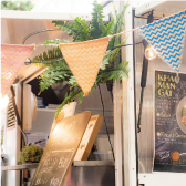 リピーターさんが続出するほど大人気なKITCHEN ROOM(キッチンルーム)。各地イベントで出店を待ち望む声を頂くほど。看板メニューのカオマンガイは、茹で鶏と鶏の煮汁で炊いたさっぱりご飯を、甘辛いソースでいただくタイの庶民料理。ルーツは中国系の料理ですが、違いはなんといってもソース!生姜、タイ醤油、ナンプラー、ごま油等、9種類の調味料をブレンドしたオリジナルソースは、茹で鶏とご飯の旨味を引き出します♪
