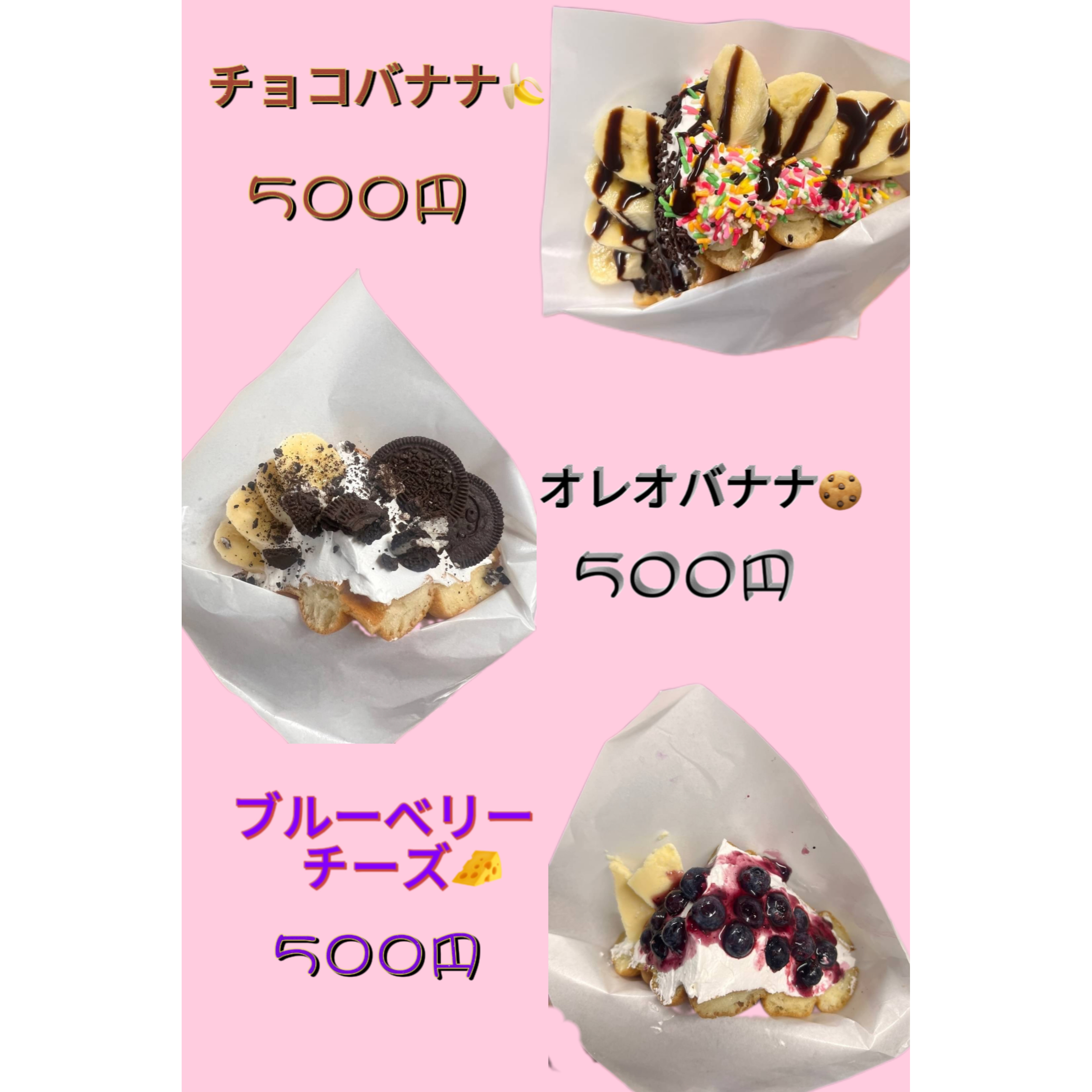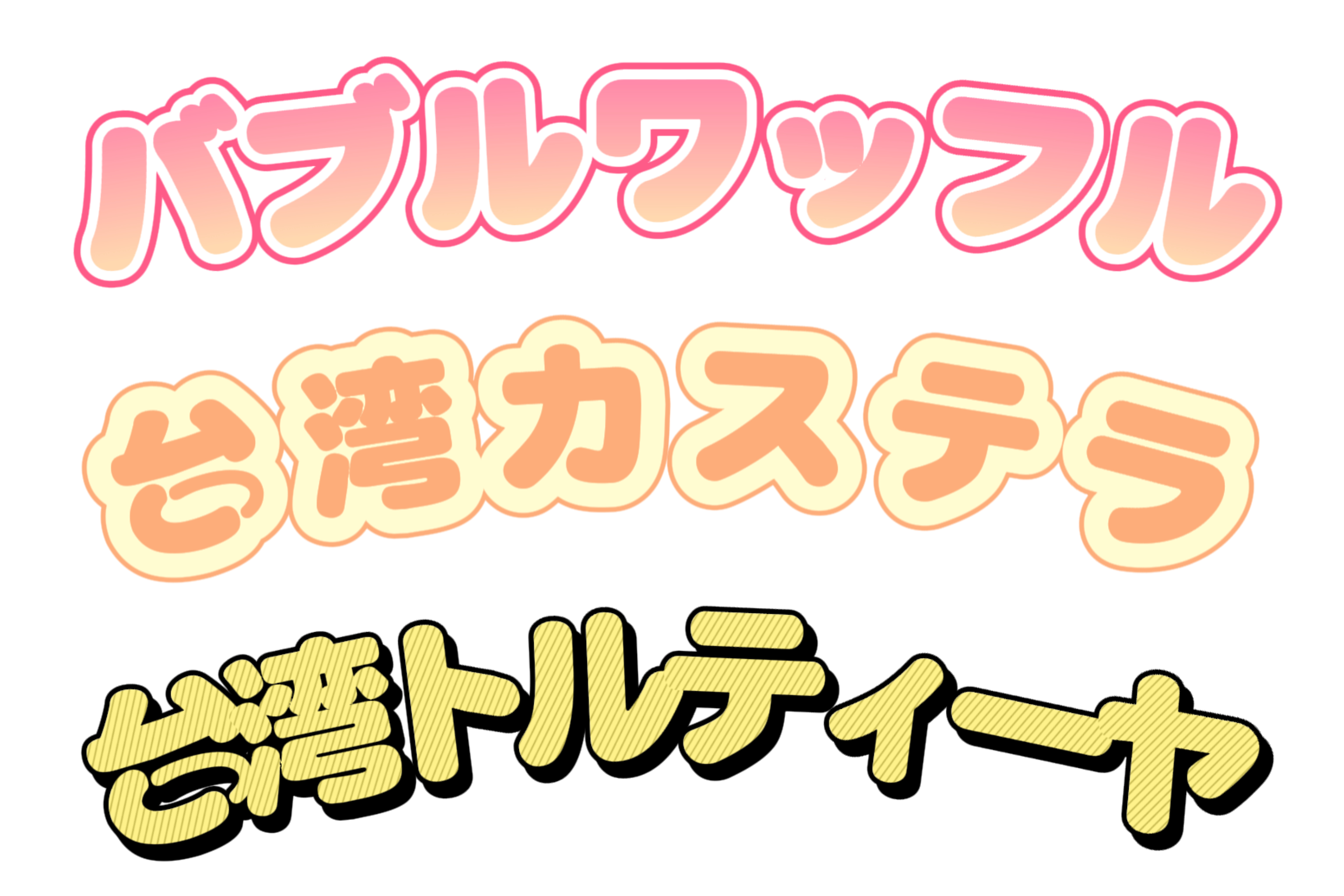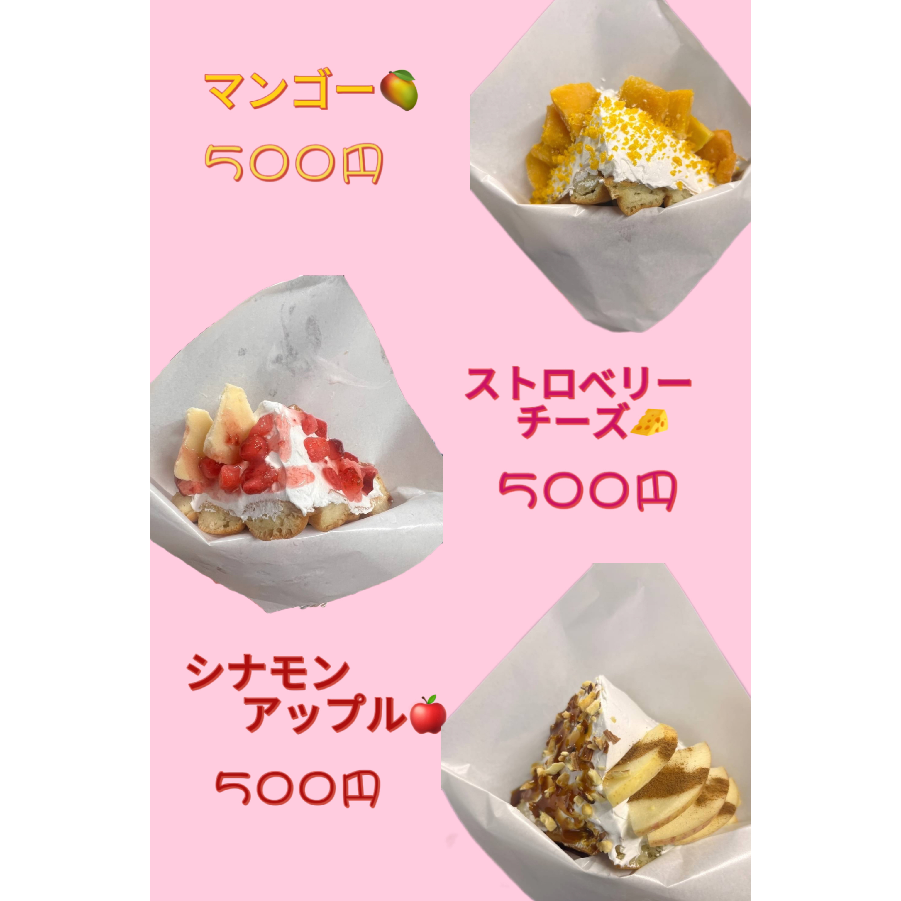バブルワッフル、台湾カステラ、台湾トルティー、レモネード、飲む豆花