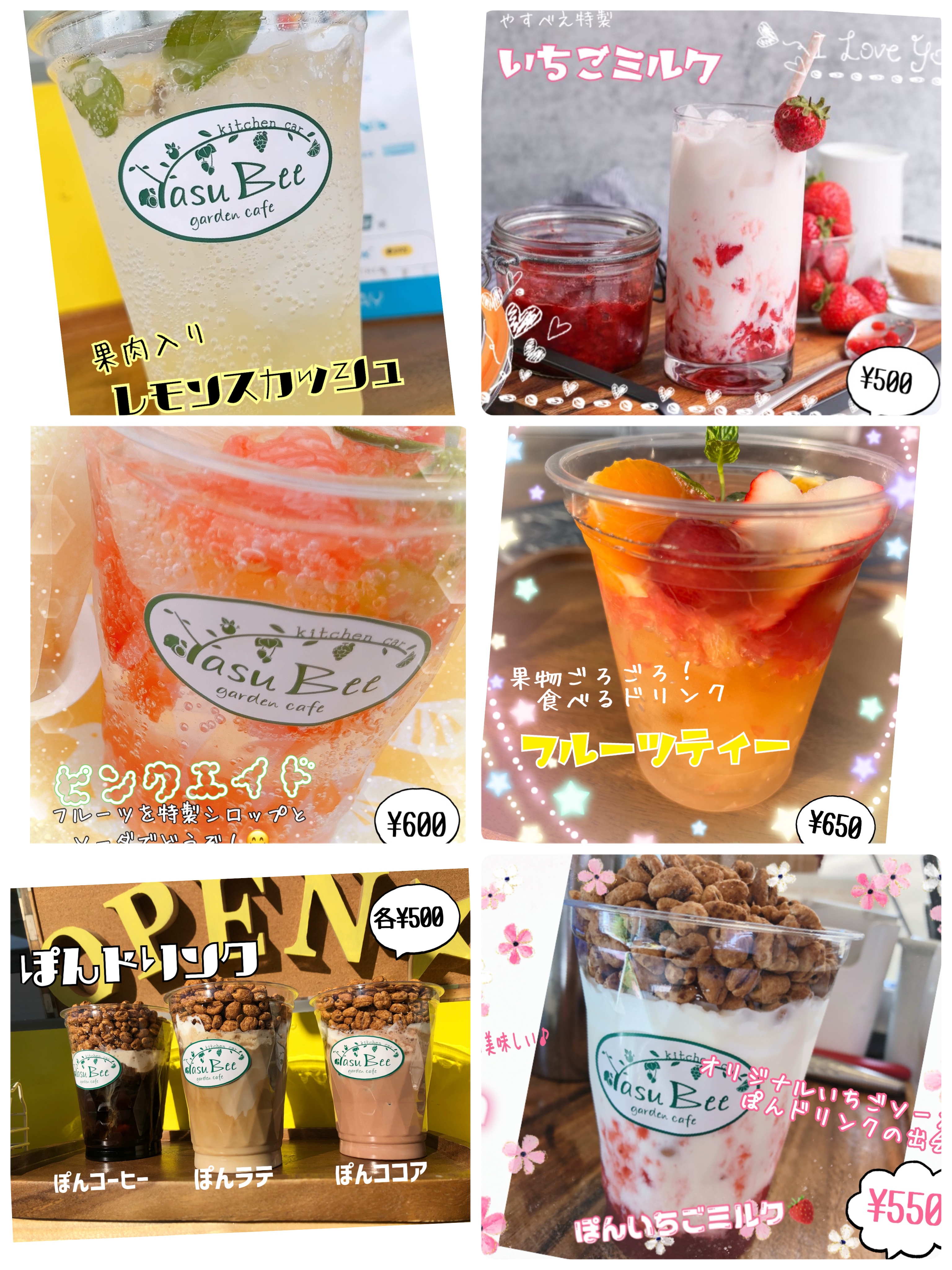 自慢の果肉感の味わえるレモンスカッシュやフルーツたっぷりの季節のドリンクをお楽しみくださいませ!
