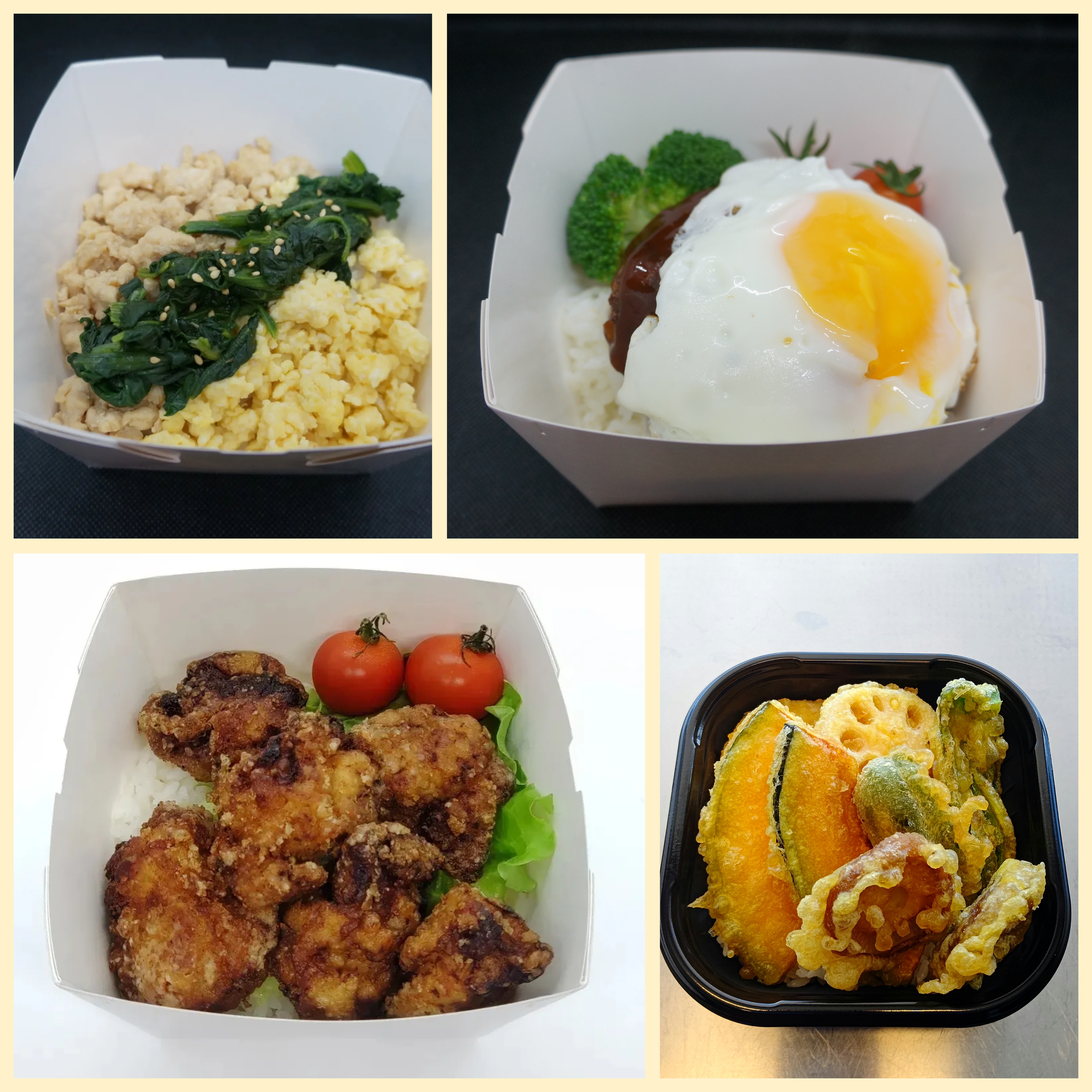 丼物、ホットサンド、スムージー、かき氷、ジェラート、唐揚げ、ポテト、チュロス